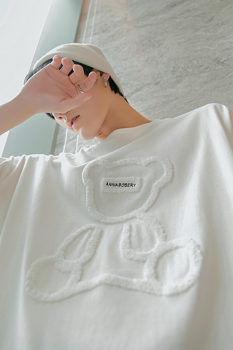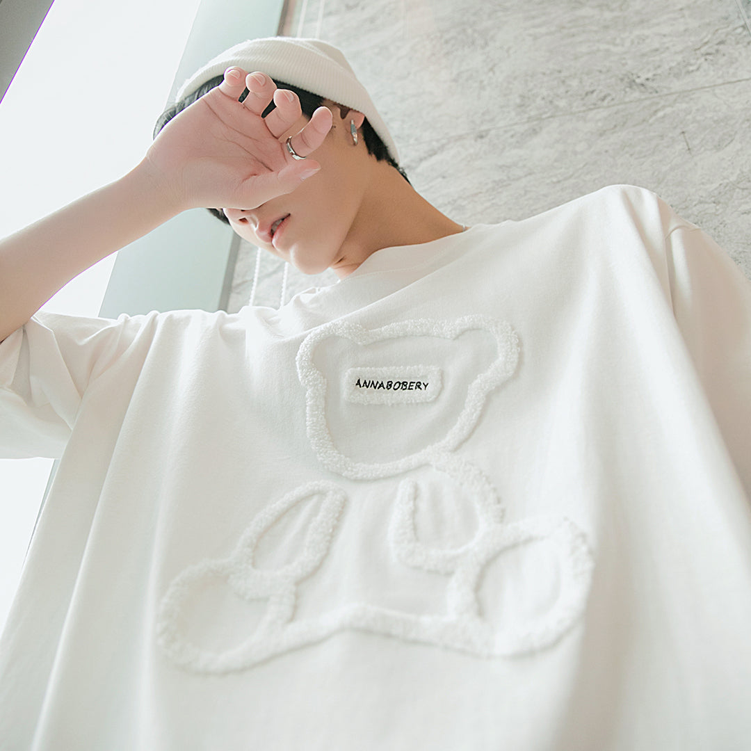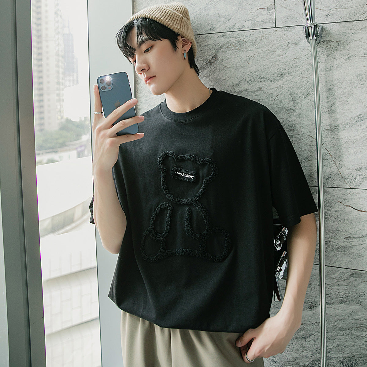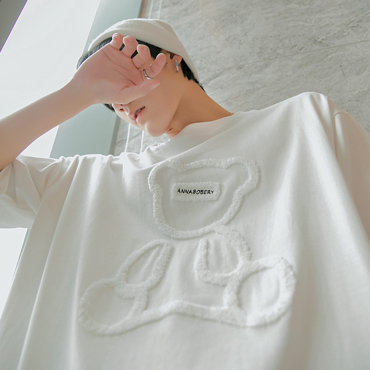 CHIC ERRO Chic Erro bear short-sleeved t-shirt men's 2021 new flocking printed white t-shirt loose top