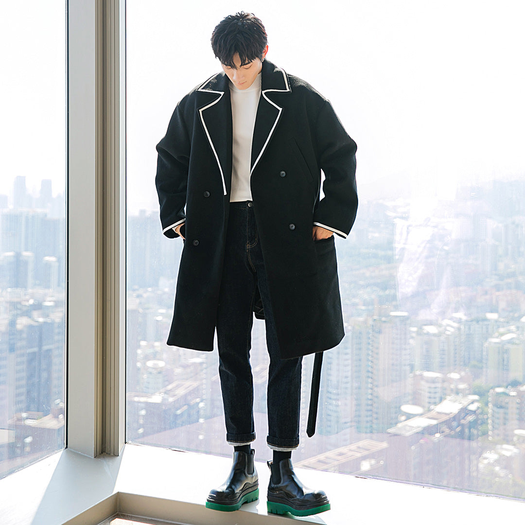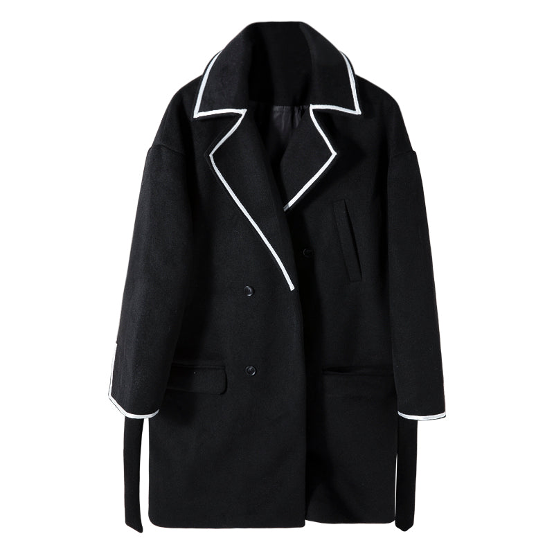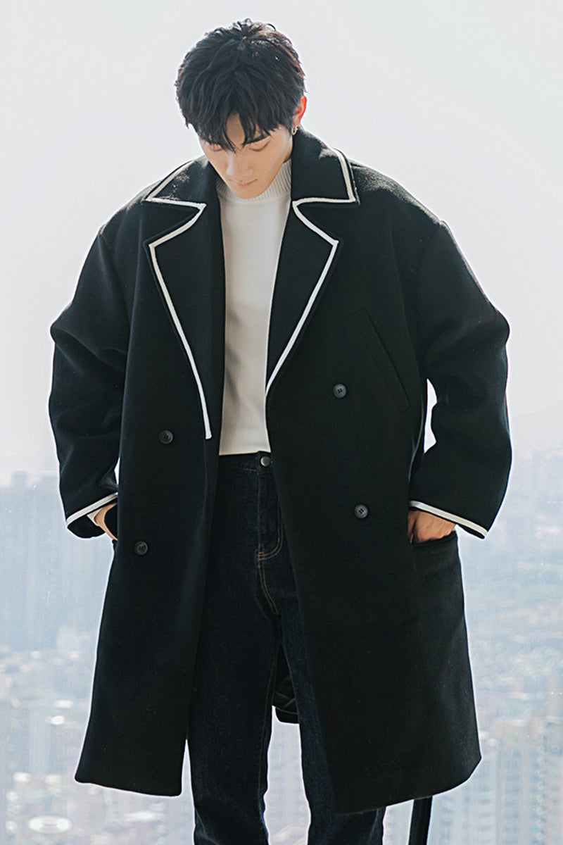 CHIC ERRO Chic Erro black mid-length woolen coat loose Korean style trendy handsome men's versatile coat