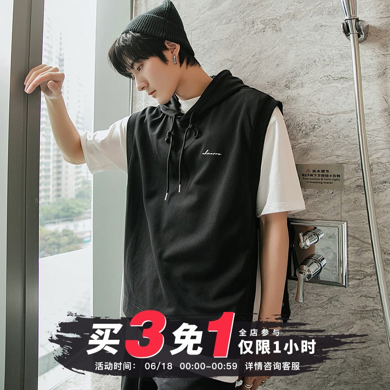 CHIC ERRO Chic Erro bottoming black vest vest men's hooded loose personality trend outer wear sleeveless waistcoat