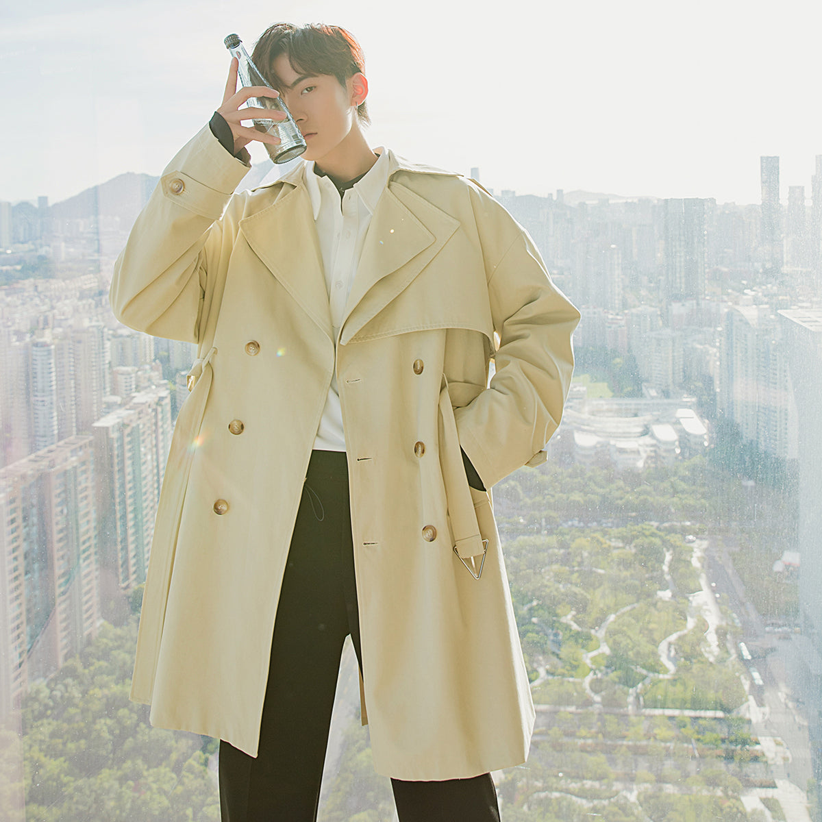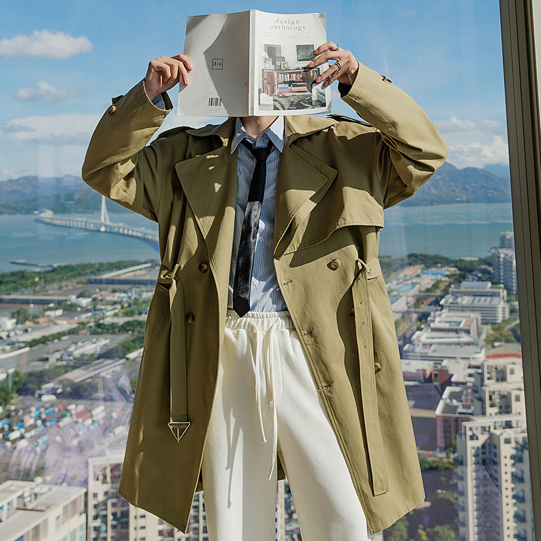 CHIC ERRO Chic Erro British style jacket men's Korean style trendy men's knee-length mid-length windbreaker men