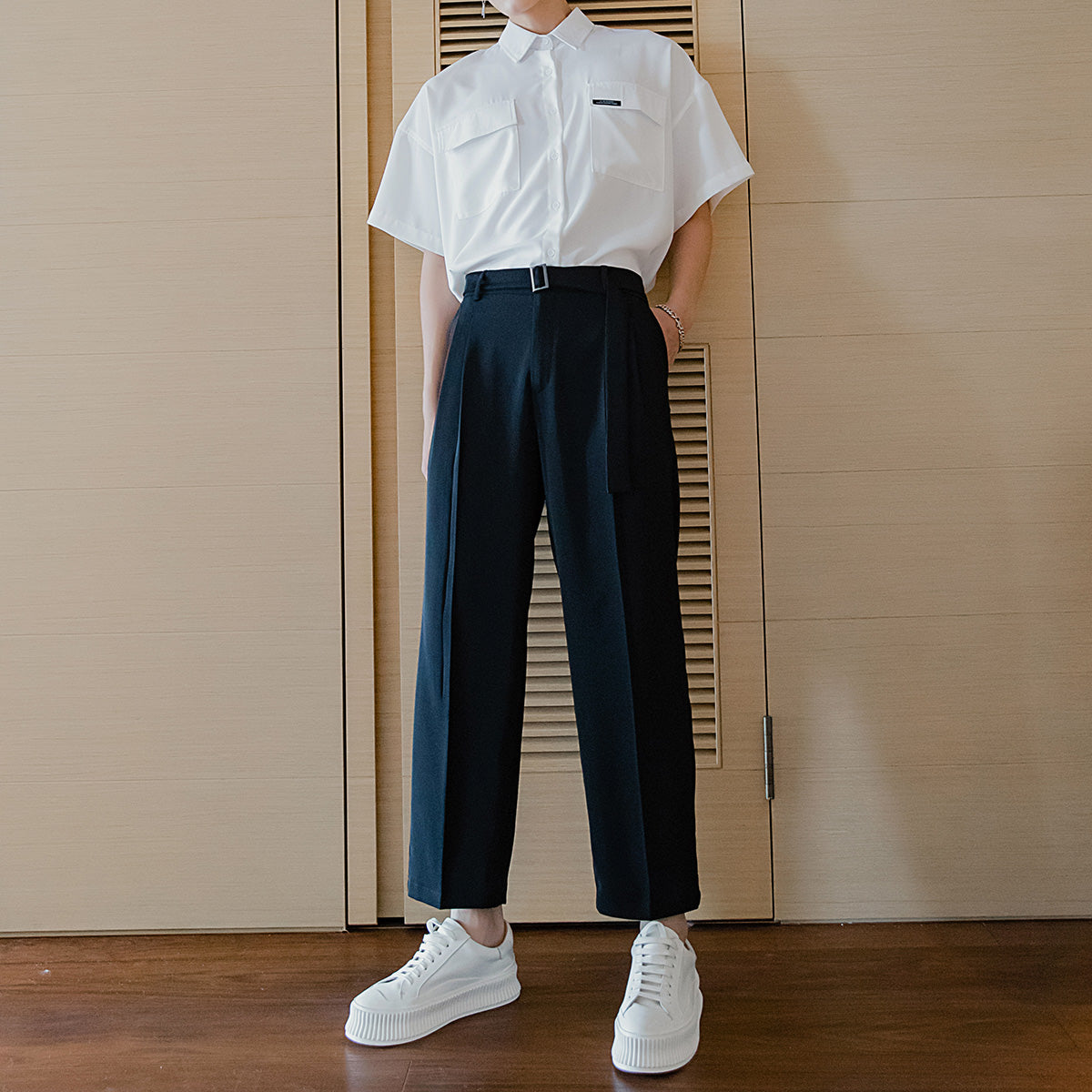 CHIC ERRO Chic Erro casual pants men's trend loose straight-leg suit pants men's nine-point ice silk trousers