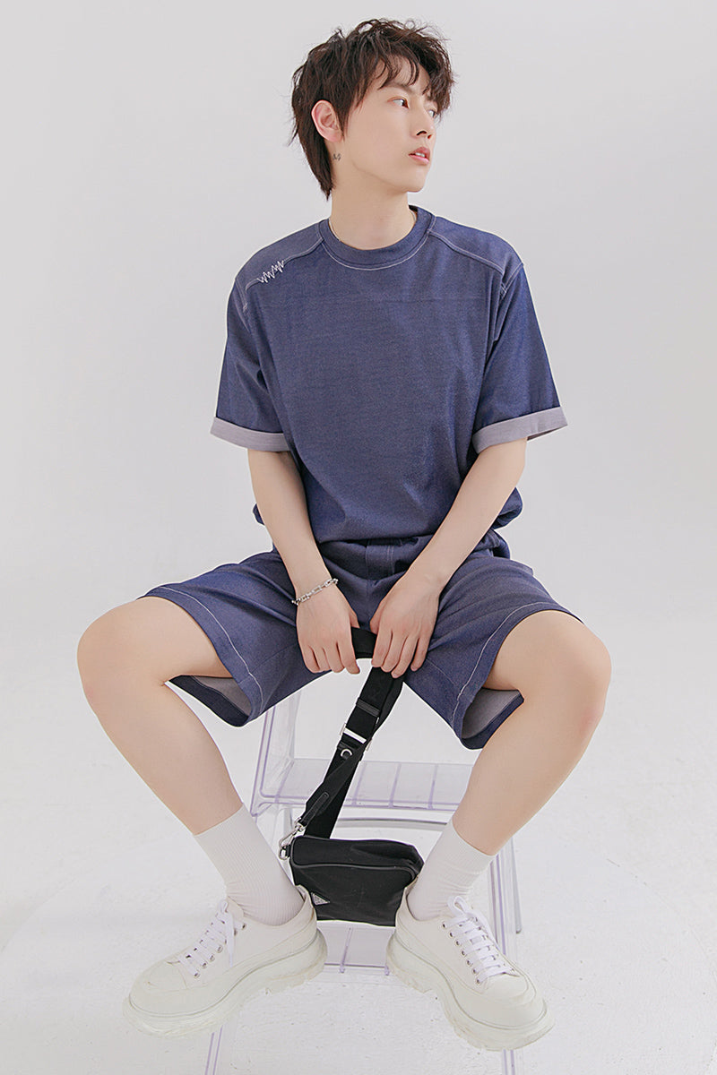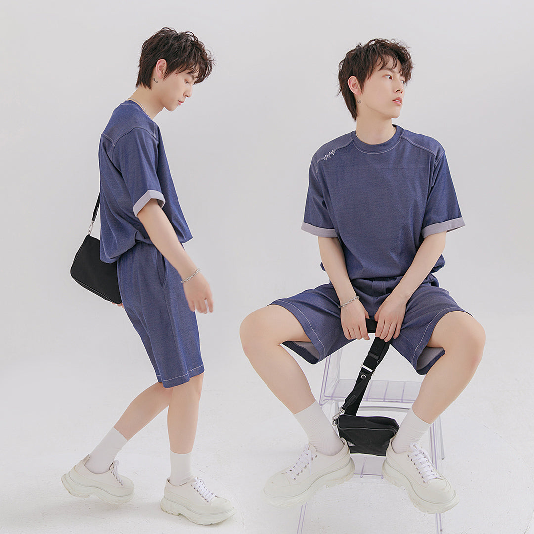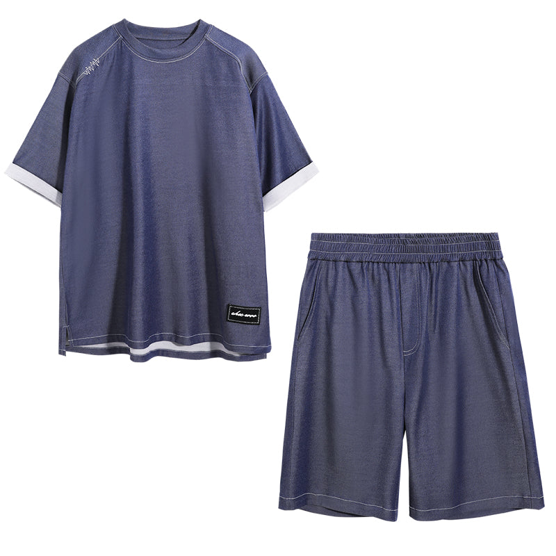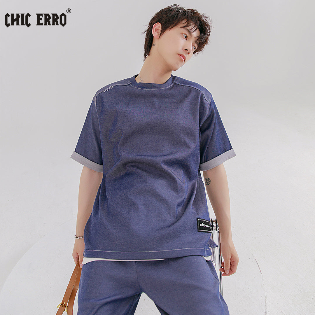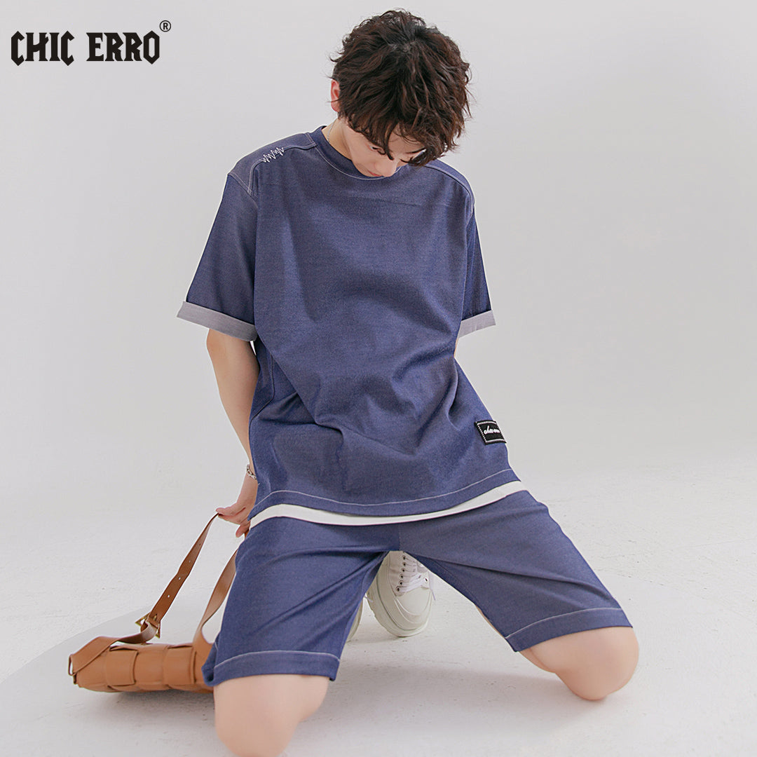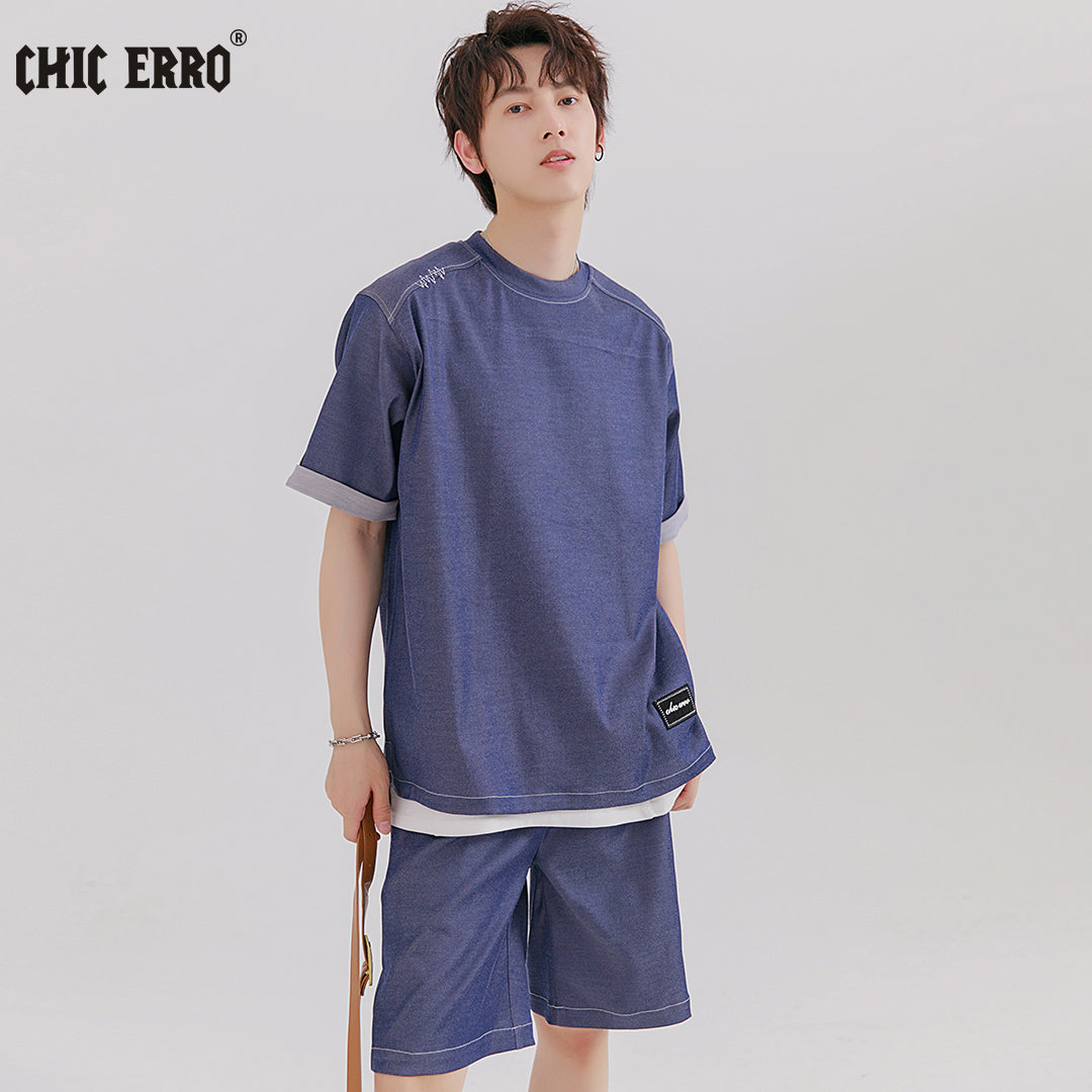 CHIC ERRO Chic Erro casual suit men's summer embroidered open-stitch short-sleeved T-shirt men's straight five-point shorts two-piece suit
