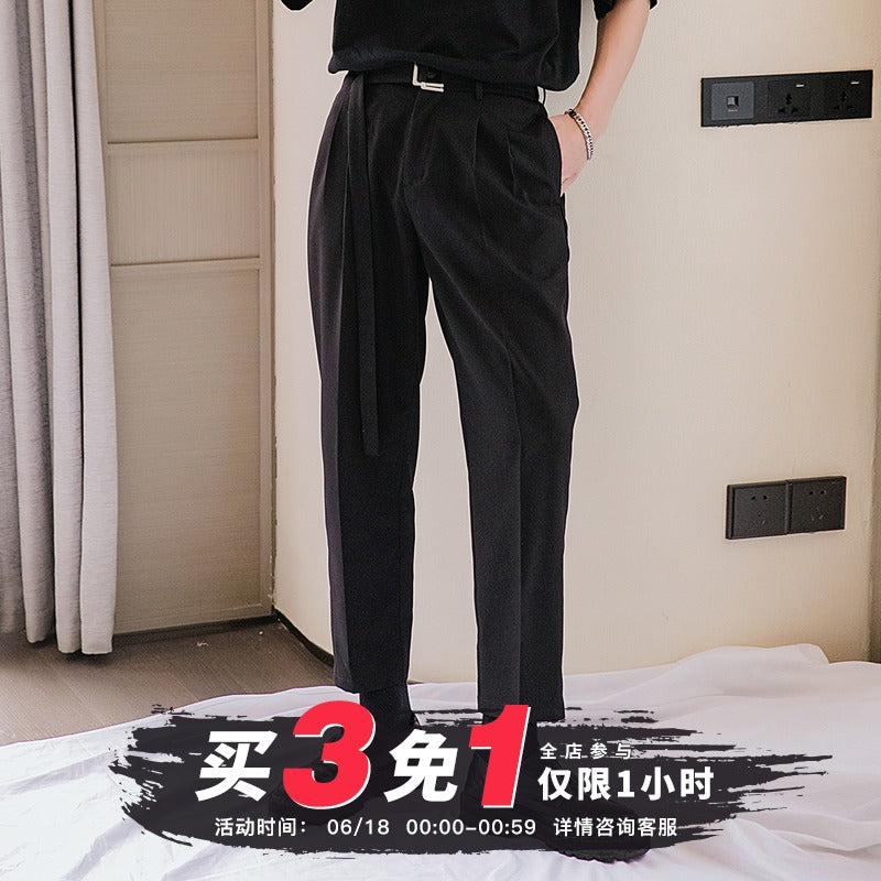 CHIC ERRO Chic Erro casual trousers men's summer thin section straight loose drape men's Korean version of the trend of nine-point pants