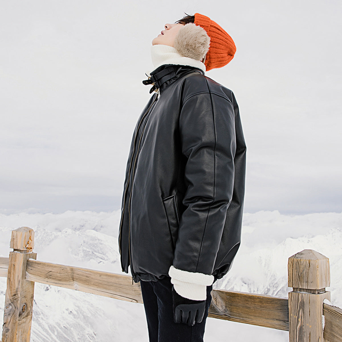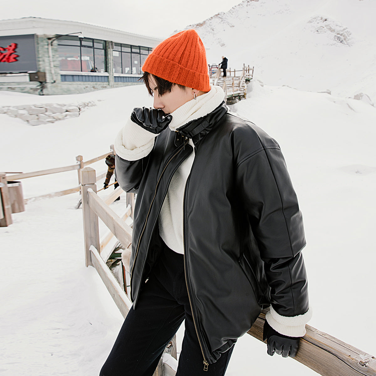 CHIC ERRO Chic Erro clothing fast delivery ~ lamb wool loose thick leather jacket male Korean version