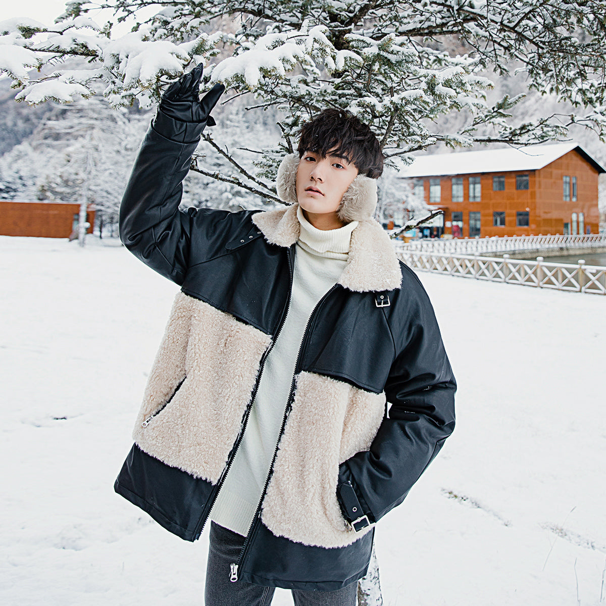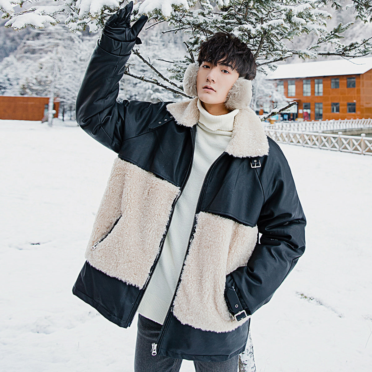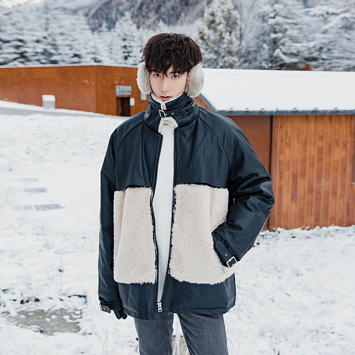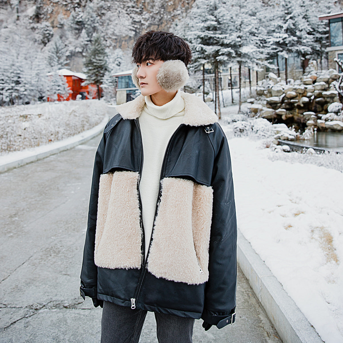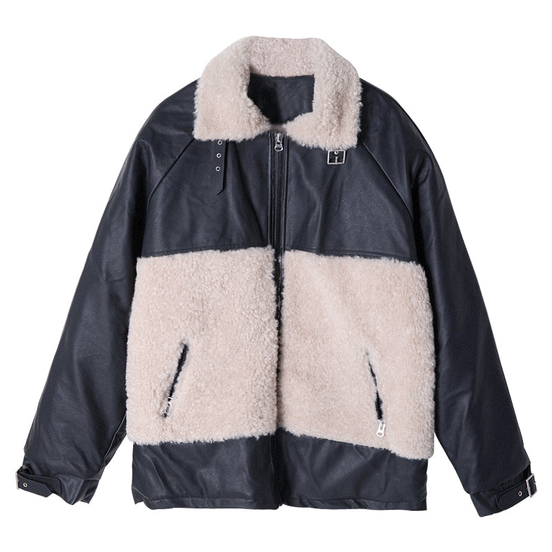 CHIC ERRO Chic Erro clothing fast delivery ~ loose and thick lamb wool stitching lapel cotton jacket