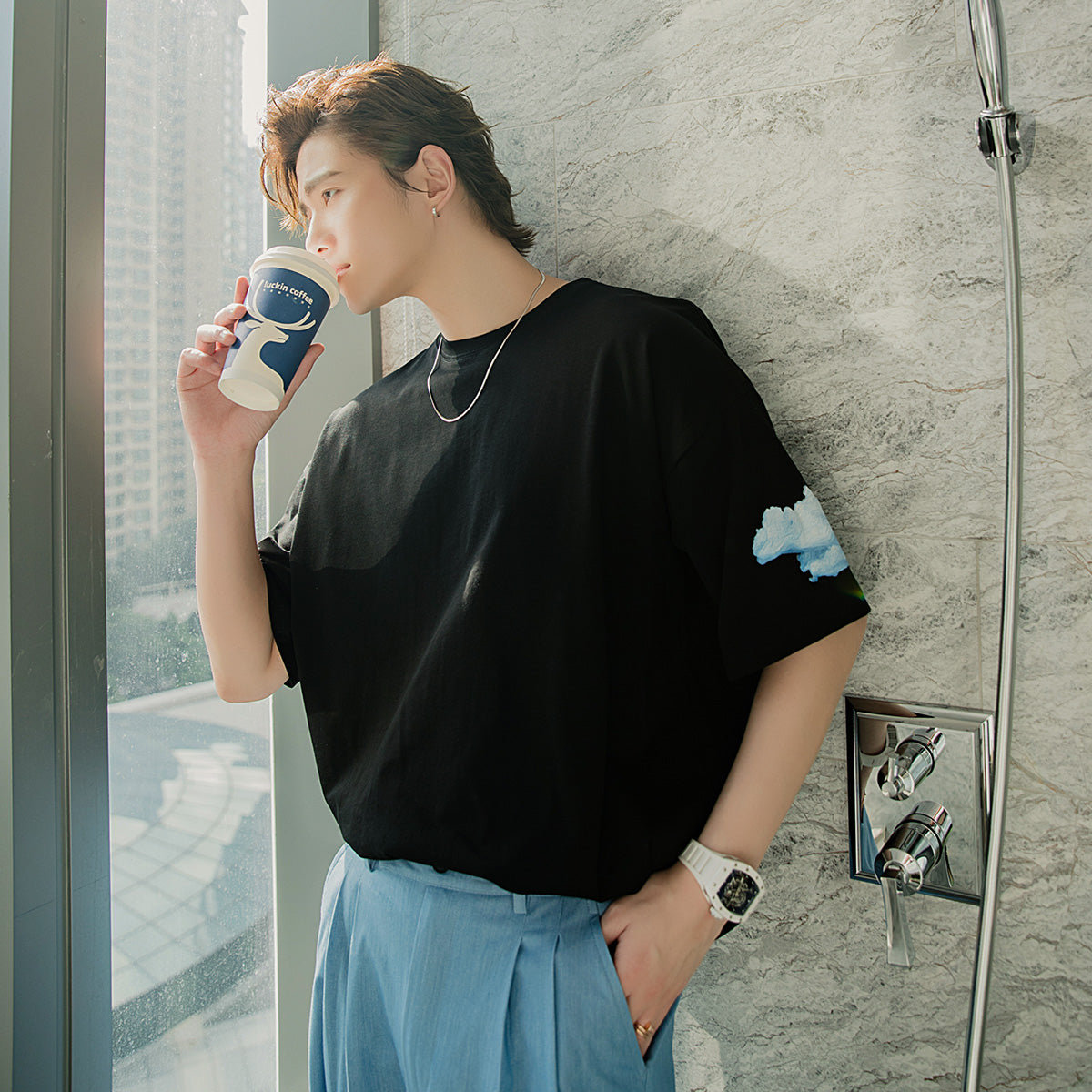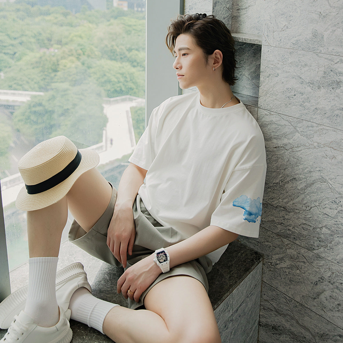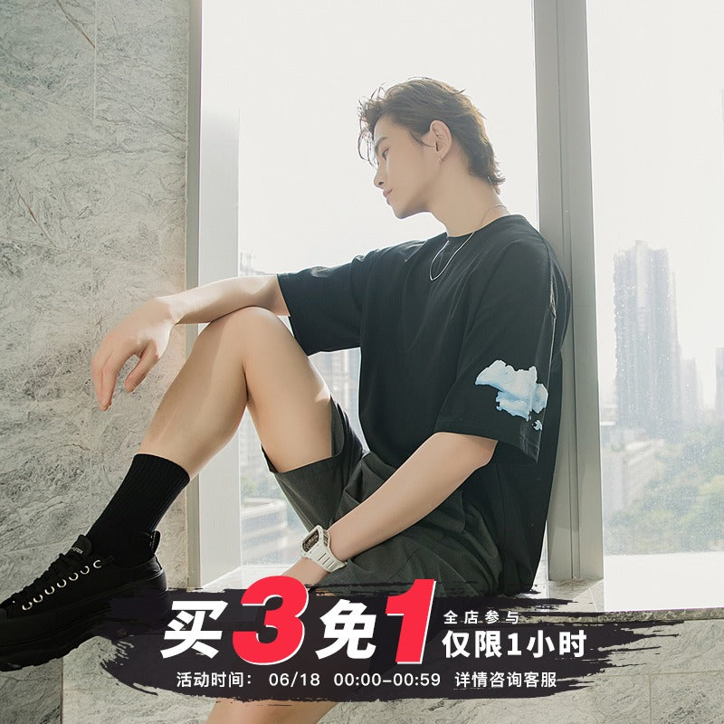 CHIC ERRO Chic Erro clothing style half-sleeved men's tide brand trend loose five-point sleeve men's printed white short-sleeved t-shirt
