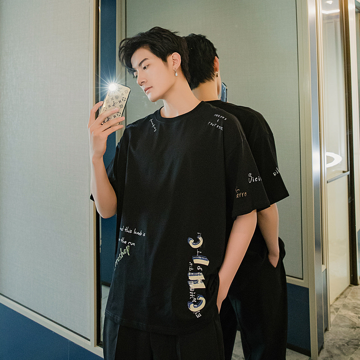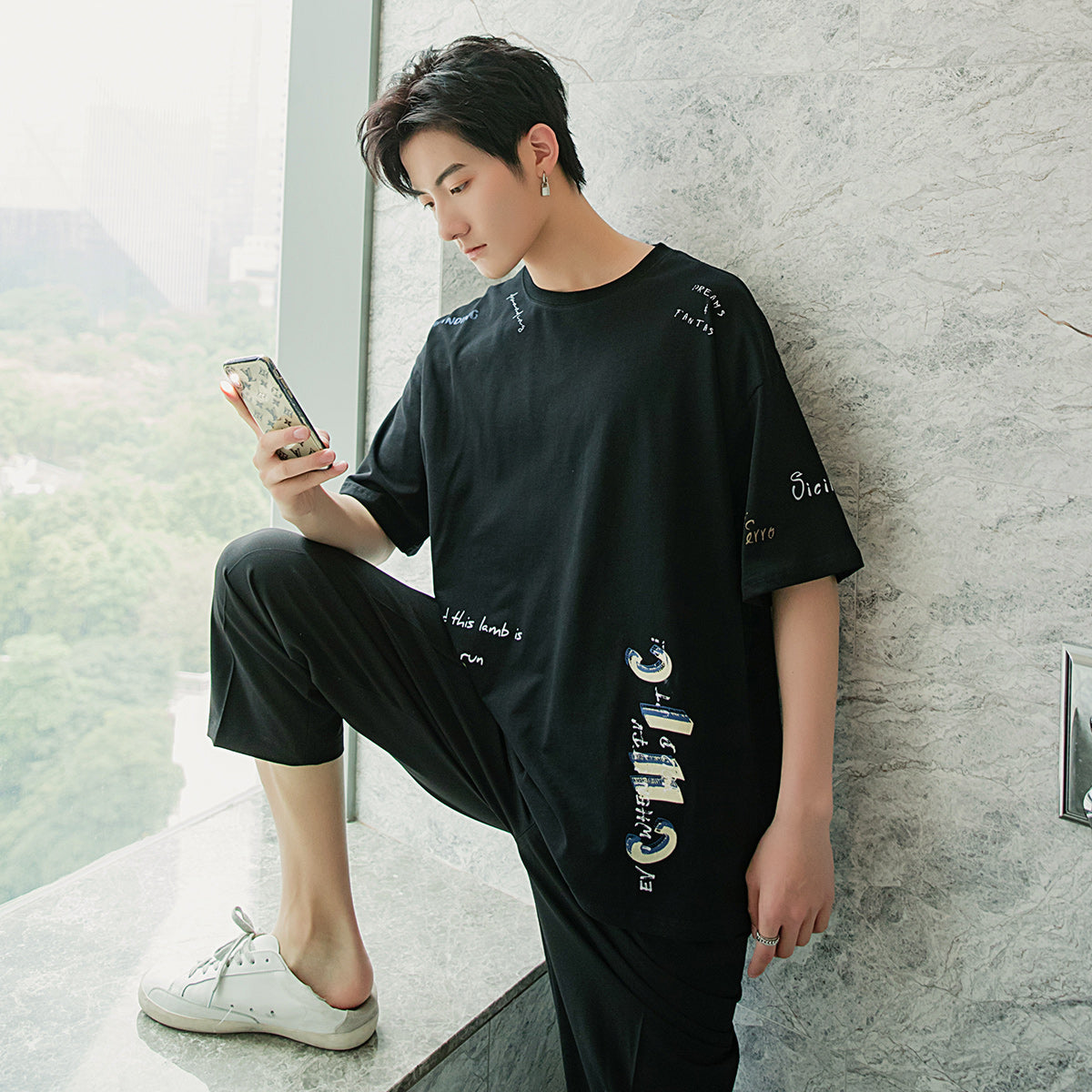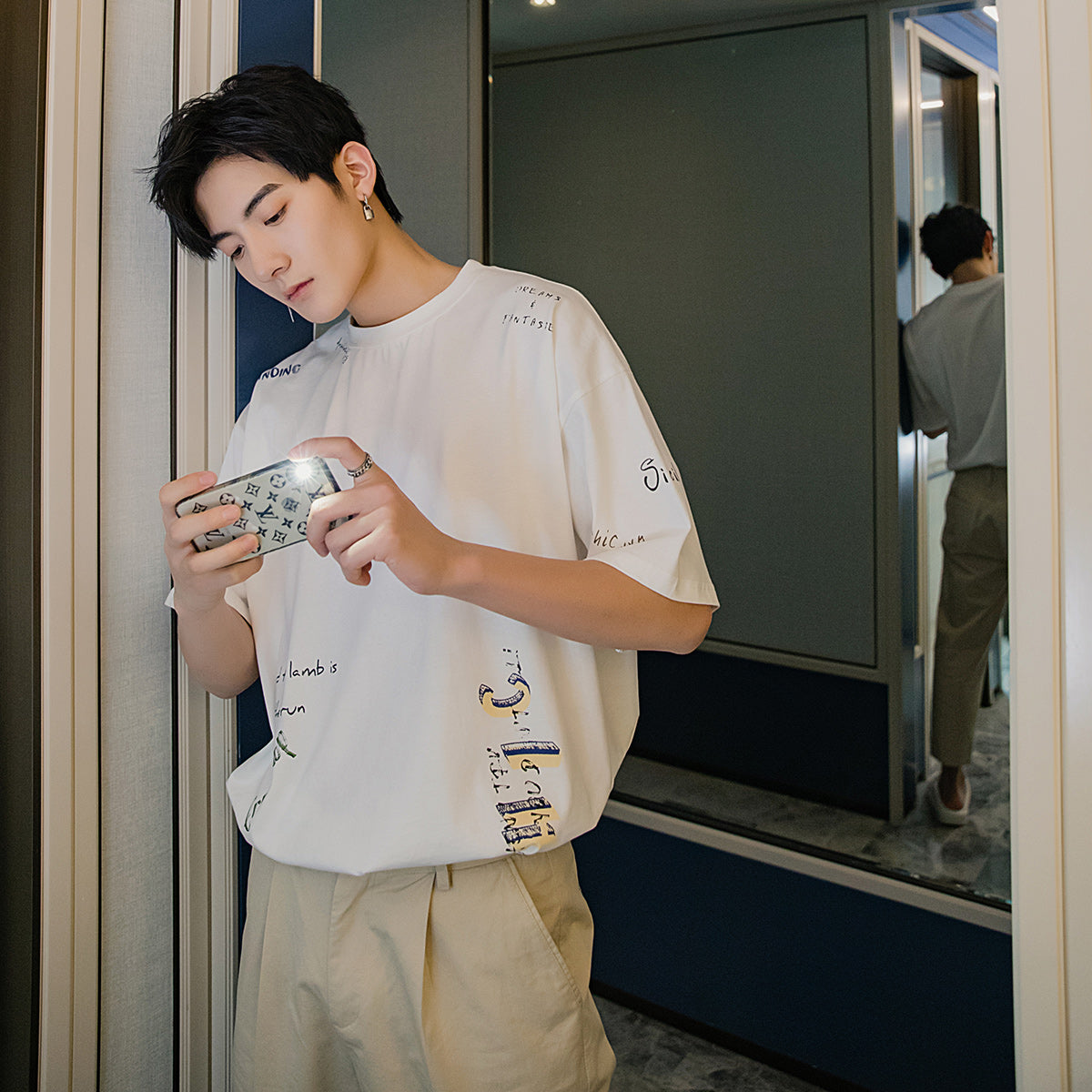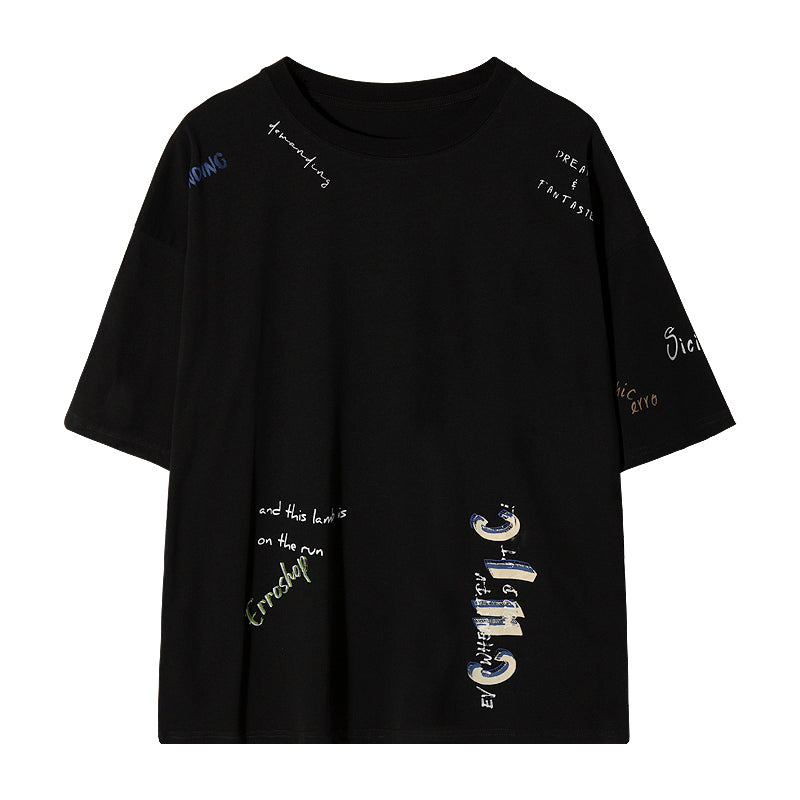CHIC ERRO Chic Erro clothing style letter printing half-sleeved men's trend five-point sleeve loose men's white short-sleeved t-shirt