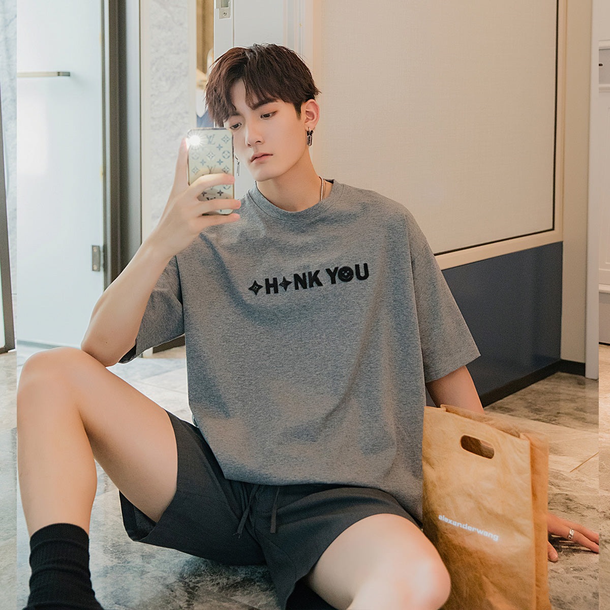 CHIC ERRO Chic Erro clothing style short-sleeved men's tide brand trend loose men's five-point sleeve letter embroidery white t-shirt