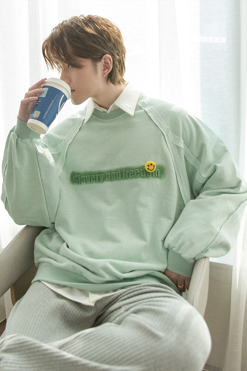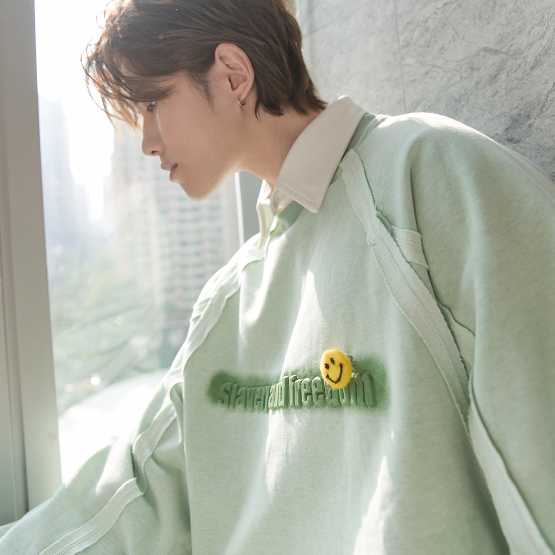 CHIC ERRO Chic Erro clothing trend letter printing tide ins reverse wear round neck sweater men's loose design shirt