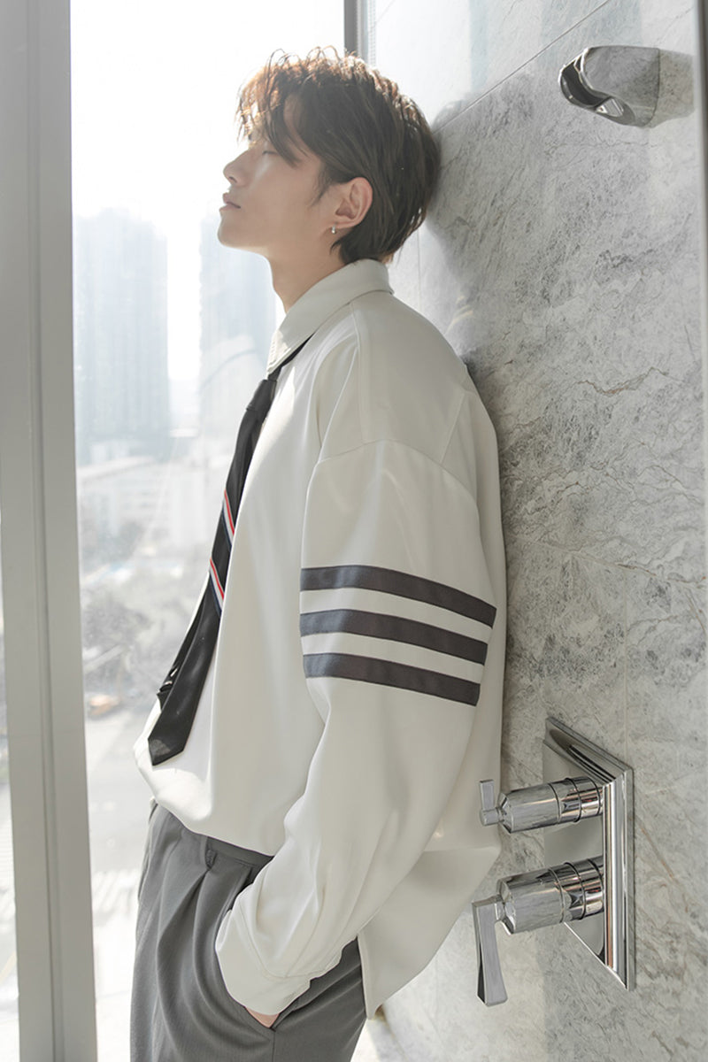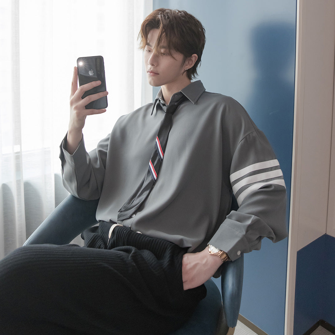 CHIC ERRO Chic Erro color contrast Japanese style tie shirt men's Korean style long-sleeved trendy handsome boys spring top