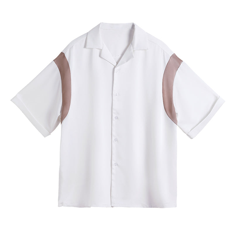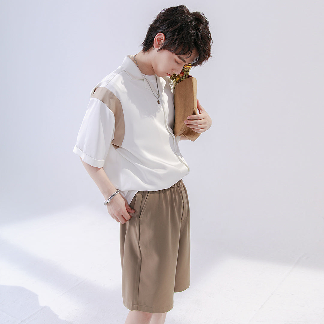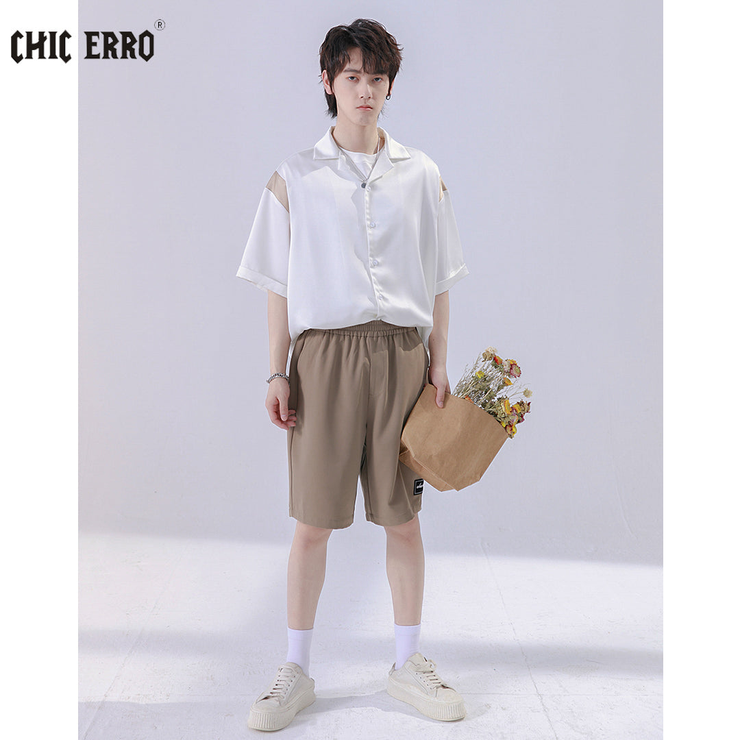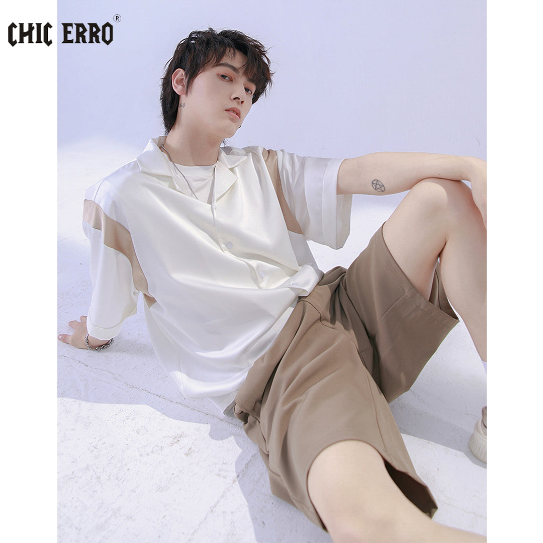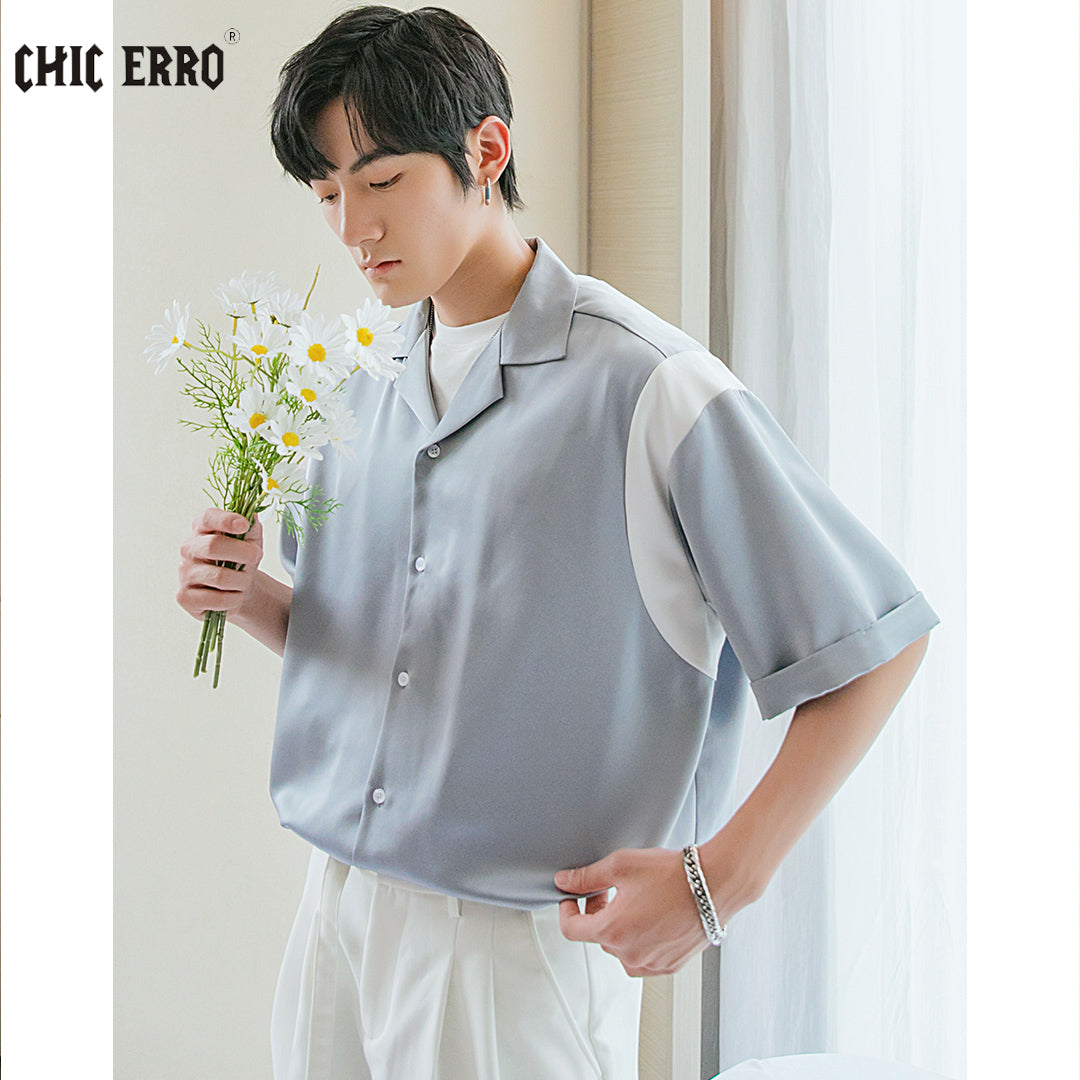 CHIC ERRO Chic Erro color contrast short-sleeved shirt men's summer thin loose loose casual men's outer wear non-iron striped shirt
