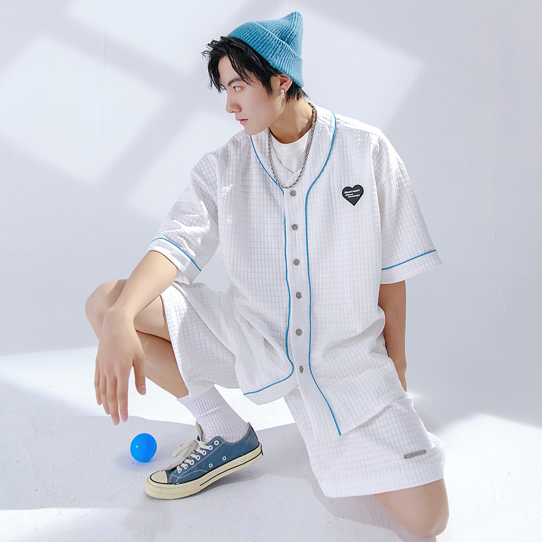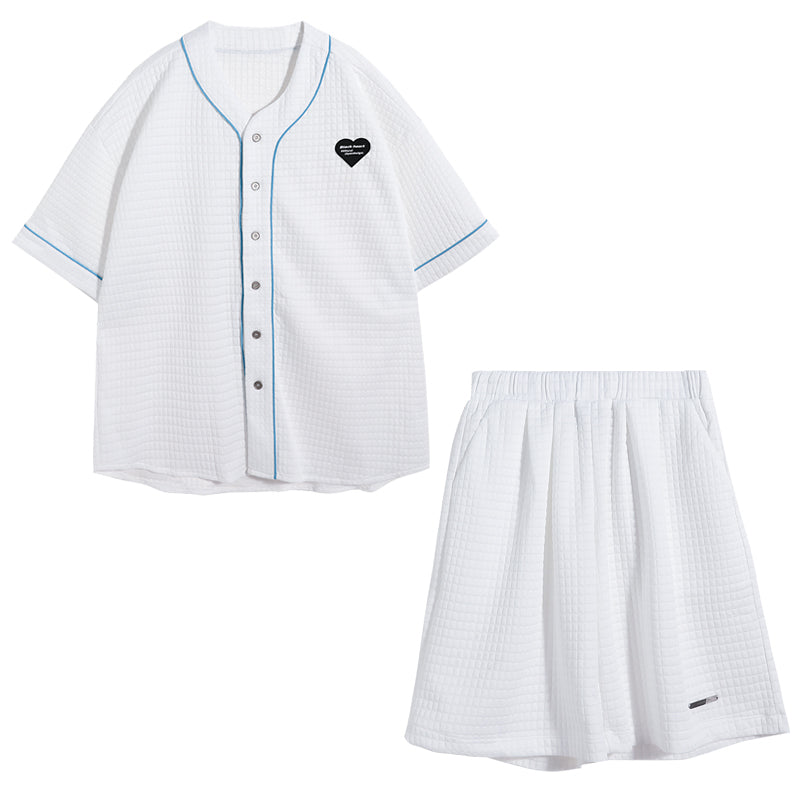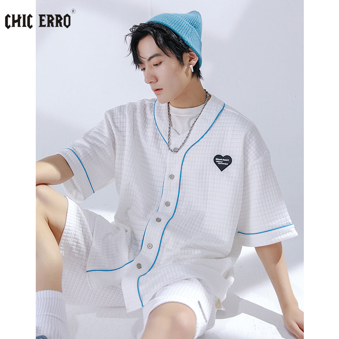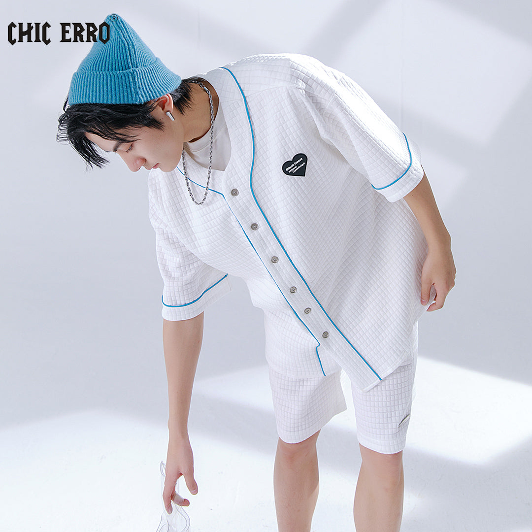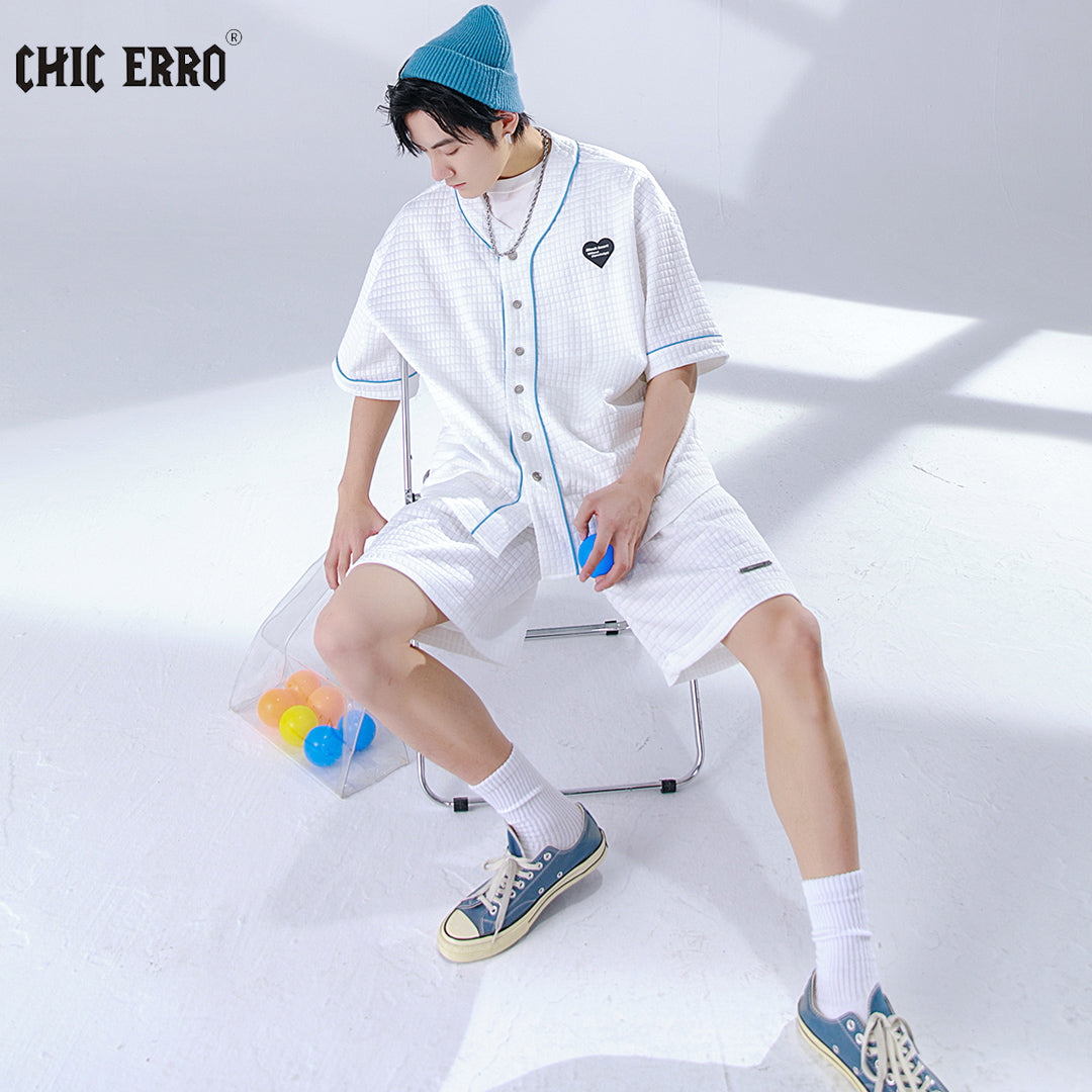 CHIC ERRO Chic Erro color contrast stitching waffle short-sleeved shirt sports shorts casual suit men's summer two-piece suit