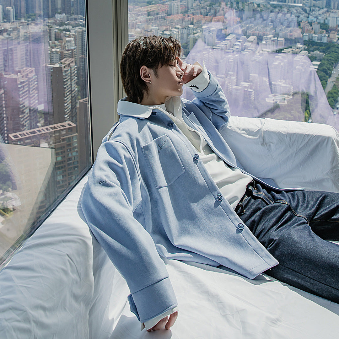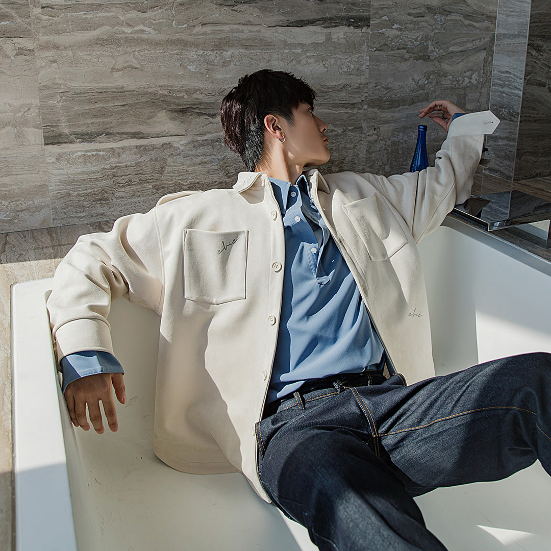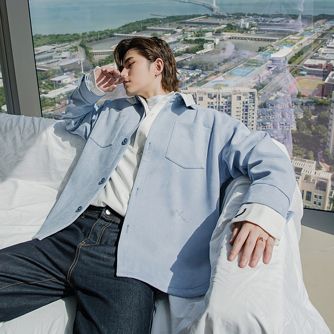 CHIC ERRO Chic Erro deerskin velvet jacket men's Korean version of the trend of all-match men's casual blue lapel jacket