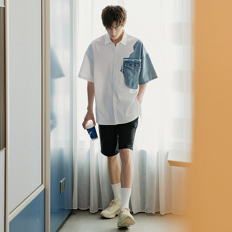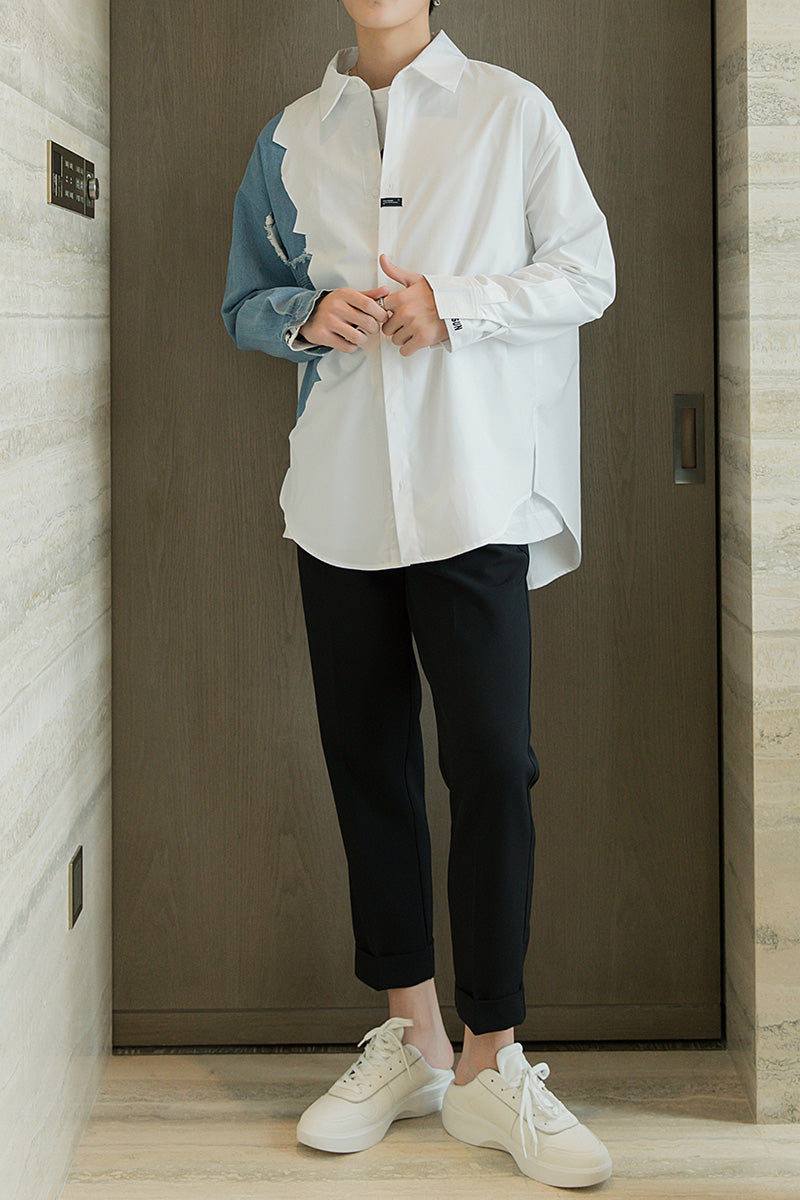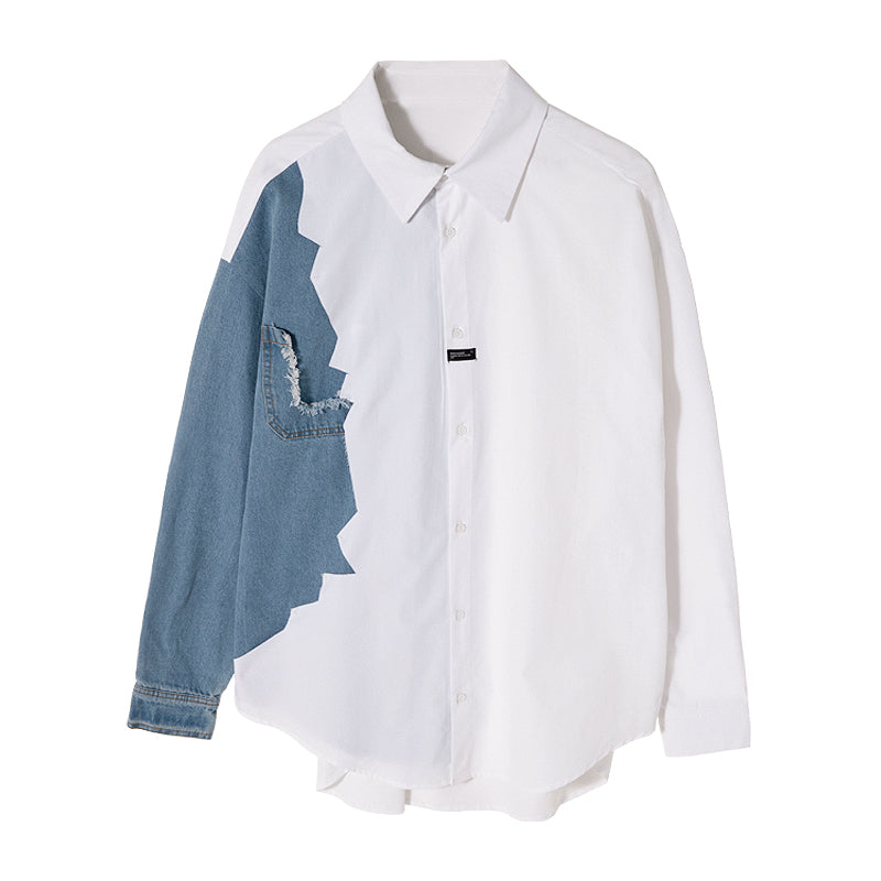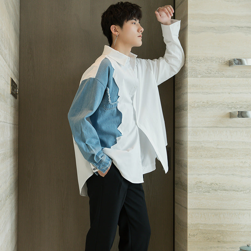 CHIC ERRO Chic Erro design sense stitching white shirt male Korean style trend men's casual white long-sleeved shirt jacket
