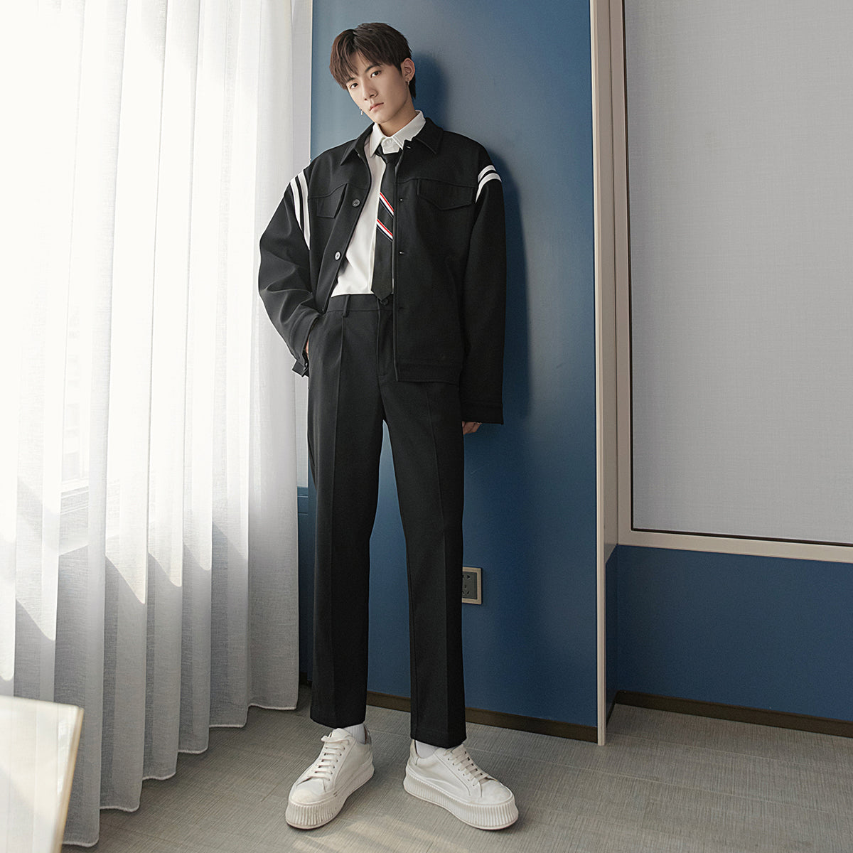 CHIC ERRO Chic Erro fashion and handsome hit color baseball uniform jacket Japanese sports suit casual pants trend two-piece suit