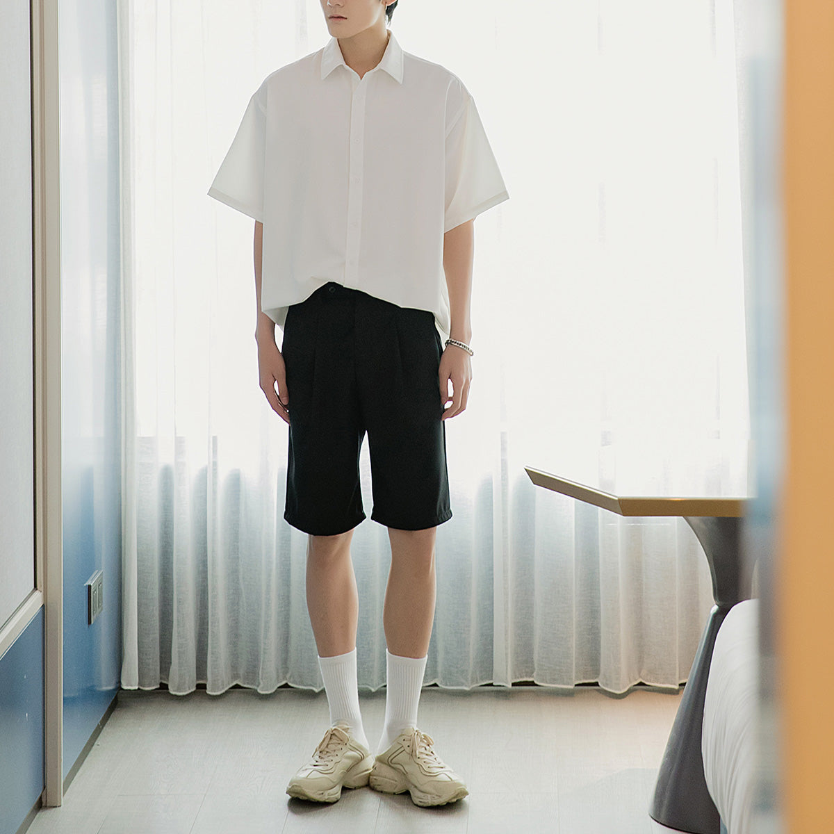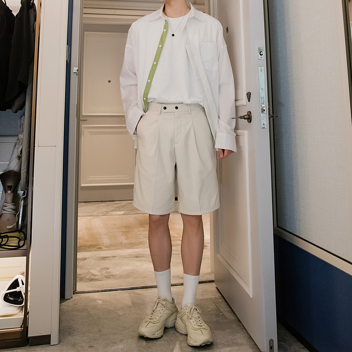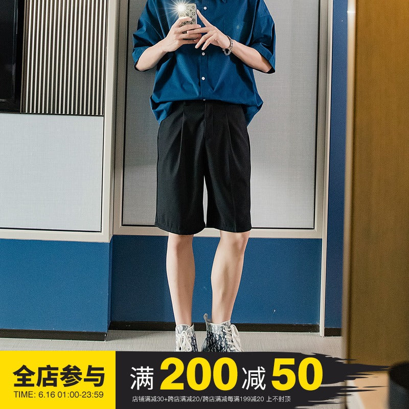 CHIC ERRO Chic Erro fashion brand black trousers five-point pants male Korean version of the trend of loose men's straight suit shorts