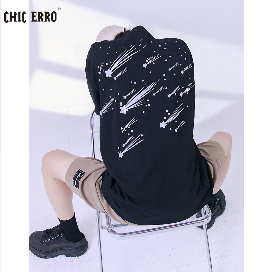 CHIC ERRO Chic Erro fashion short-sleeved t-shirt men's summer thin loose ins men's casual reflective printed t-shirt