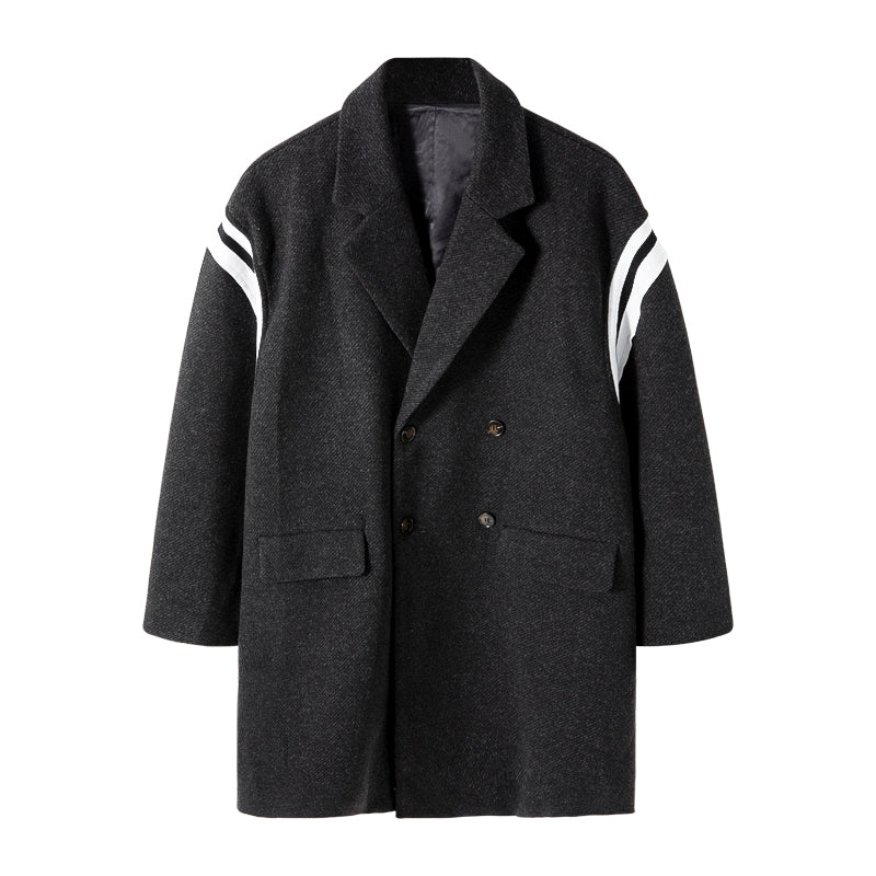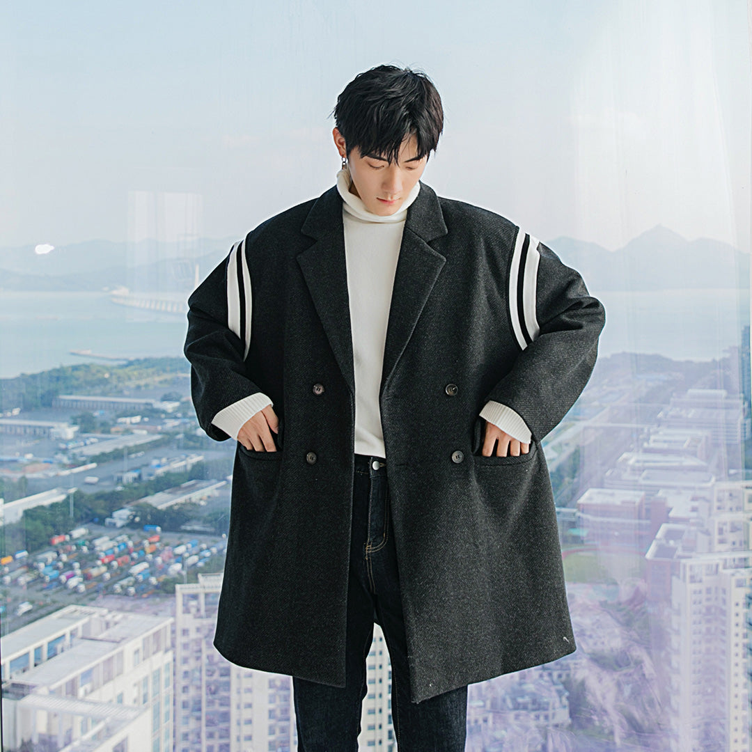 CHIC ERRO Chic Erro handsome mid-length windbreaker stitching Korean loose autumn and winter woolen coat men