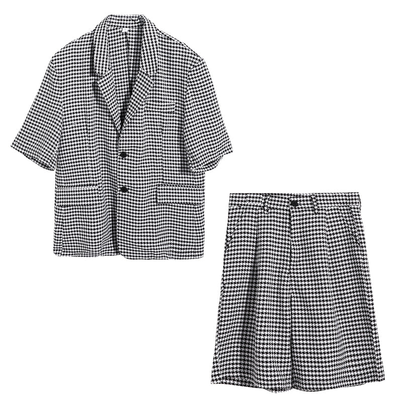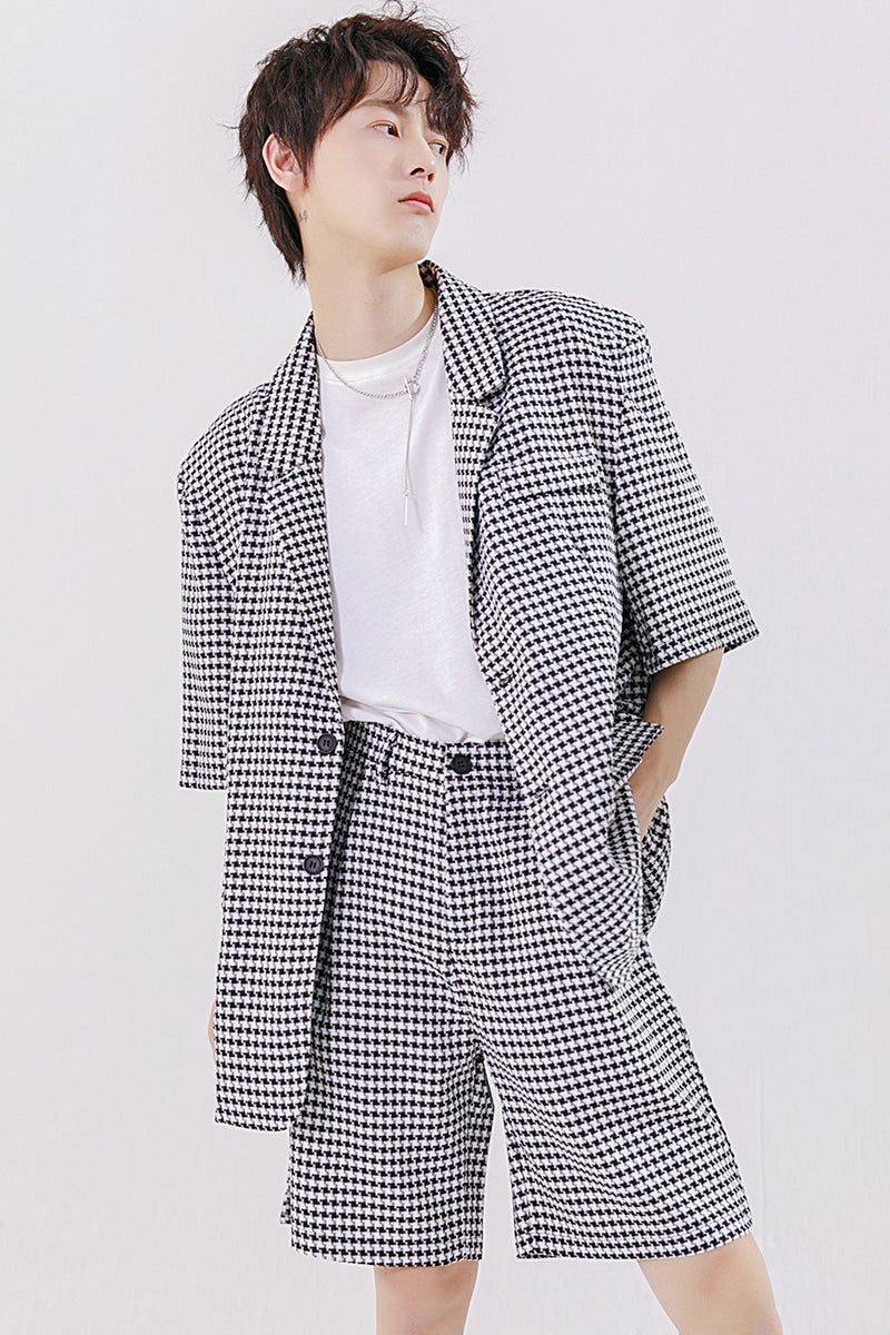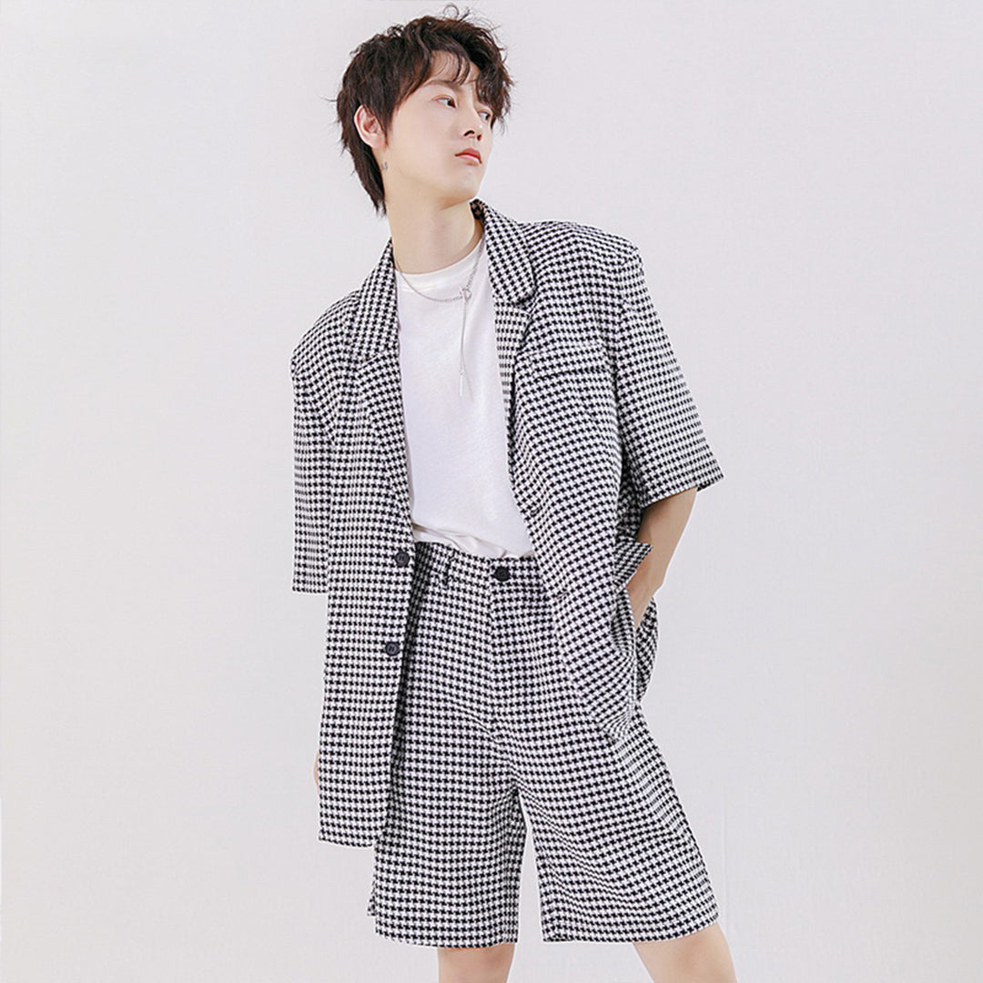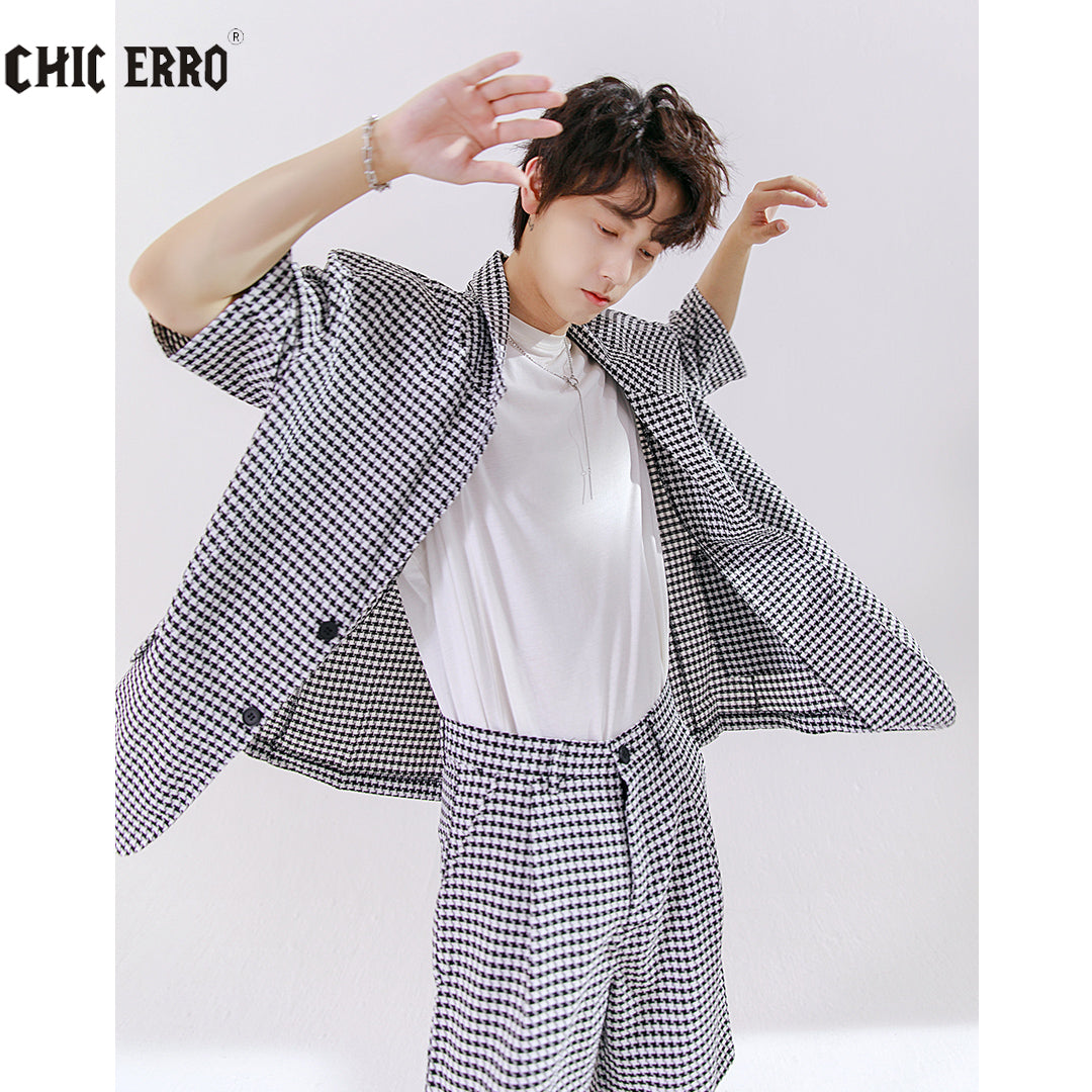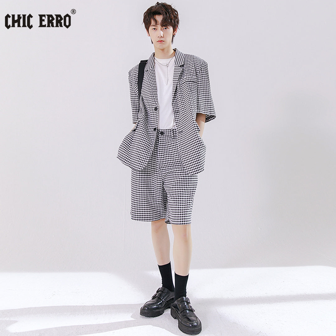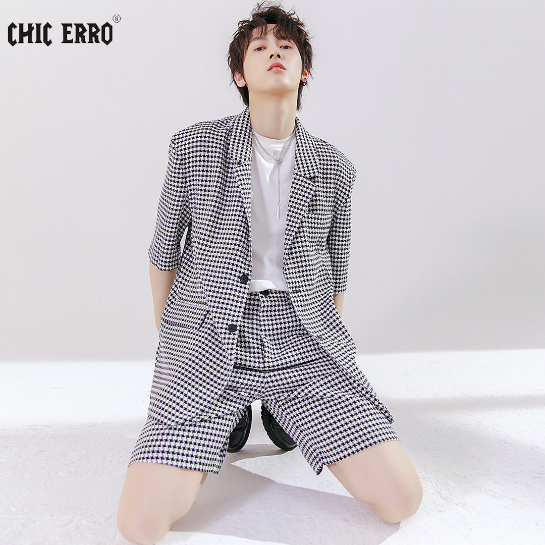 CHIC ERRO Chic Erro handsome suit suit thin short-sleeved Korean handsome plaid casual suit shorts two-piece suit