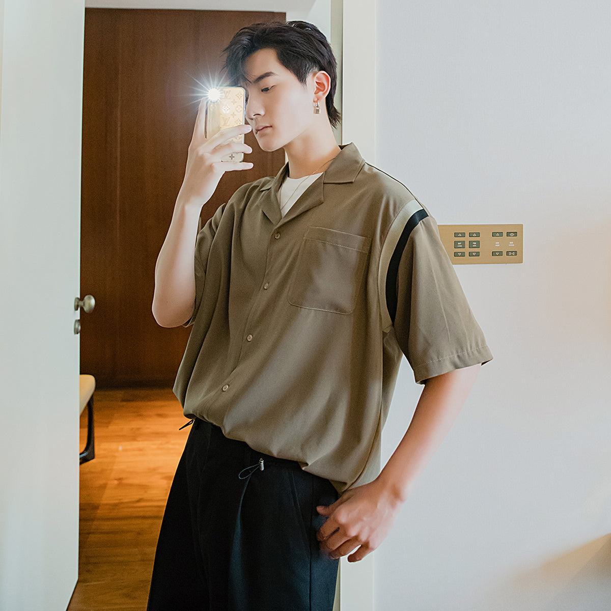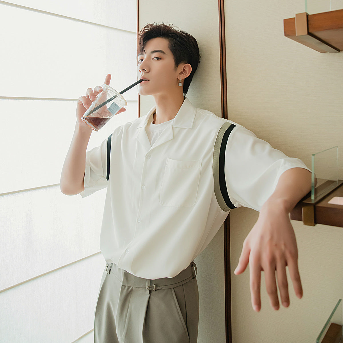 CHIC ERRO Chic Erro ice silk short-sleeved white shirt male Korean version of the trend loose men's summer white design shirt