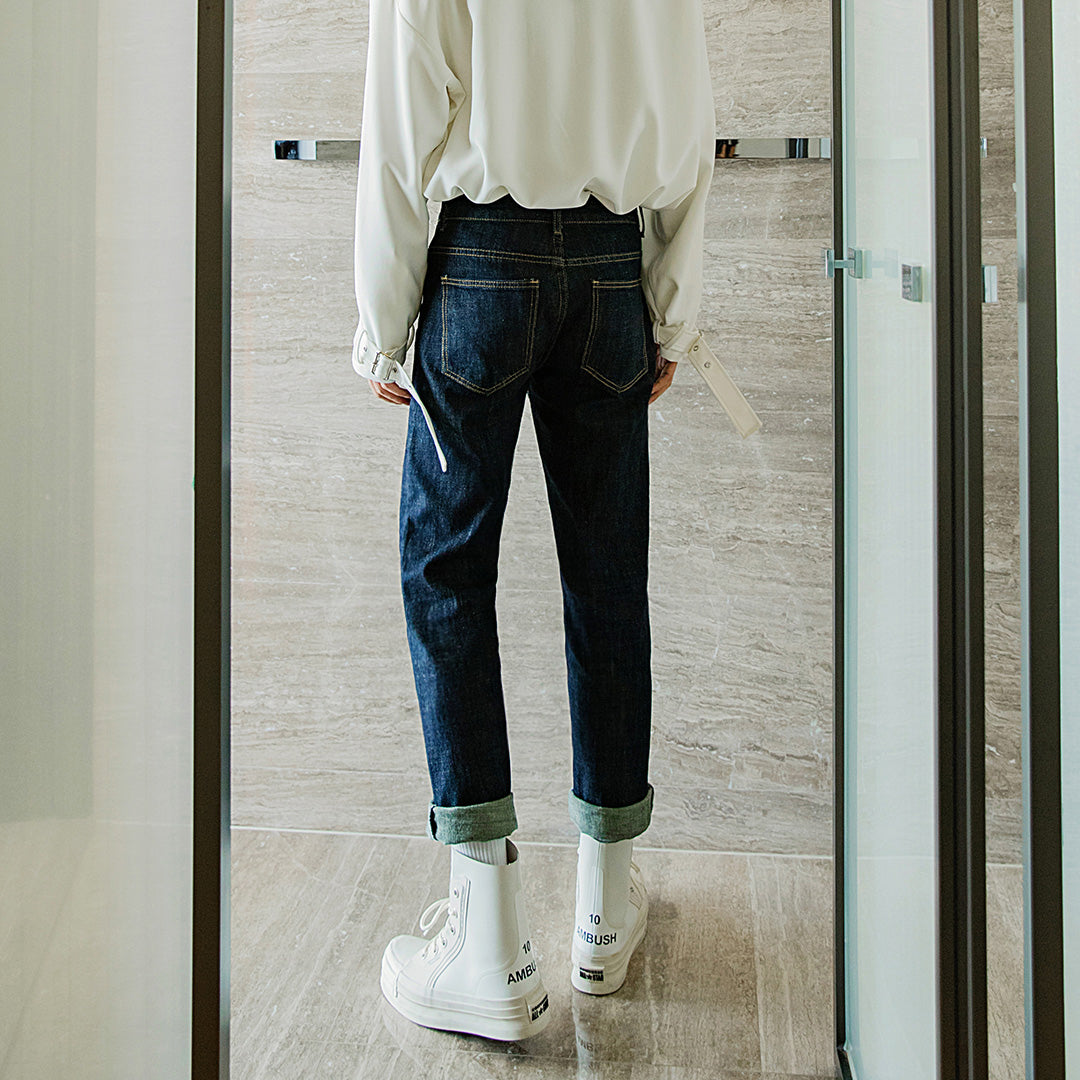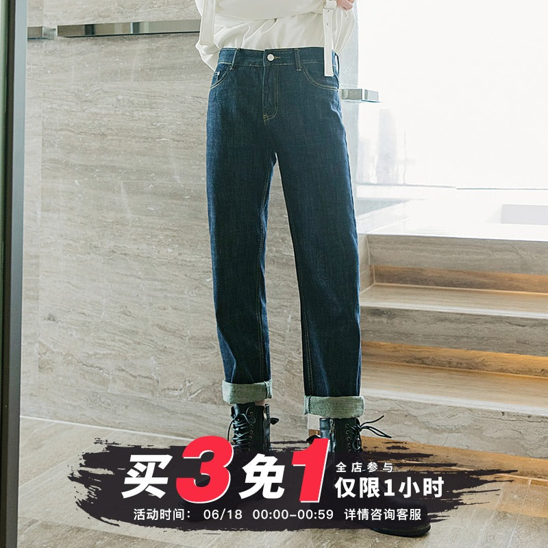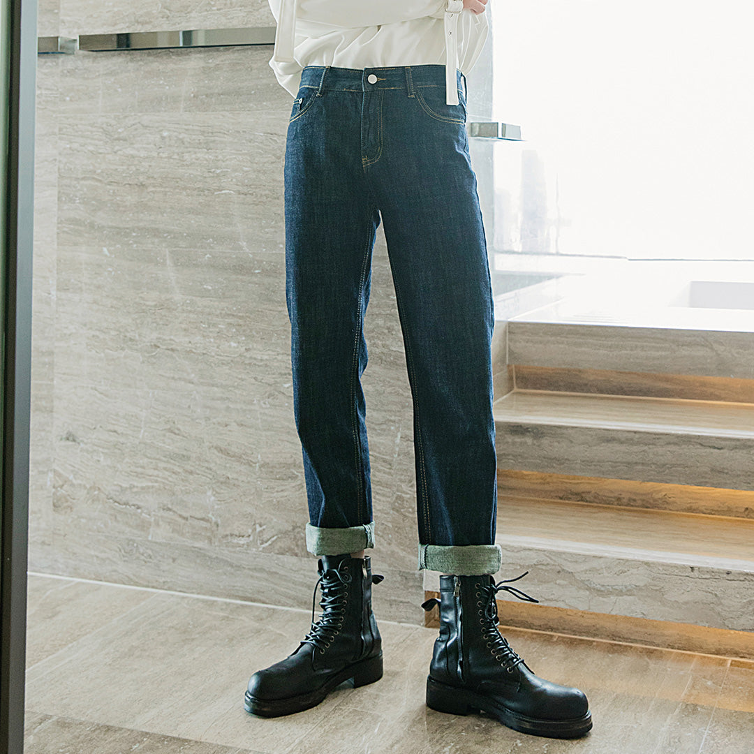 CHIC ERRO Chic Erro Korean autumn pants men's dark blue casual all-match nine-point jeans men's straight loose trend