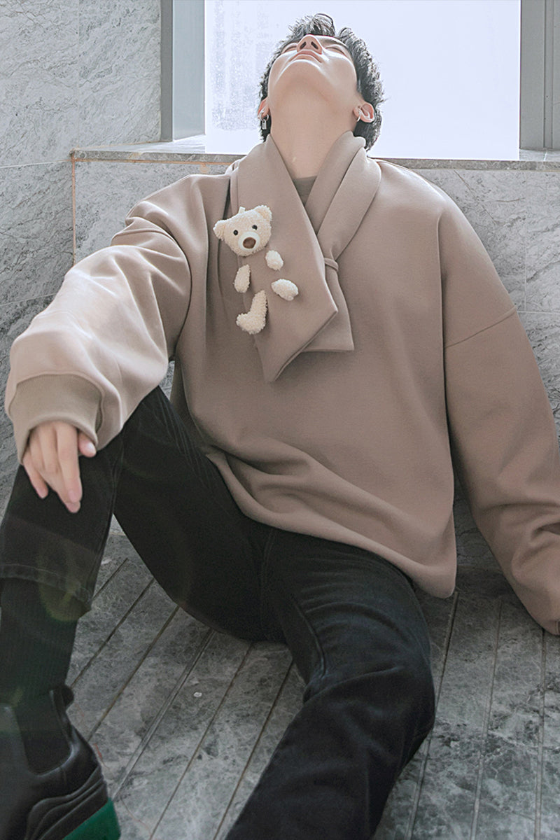 CHIC ERRO Chic Erro Korean style lazy bear sweater men's loose round neck trend wild 2020 autumn tops