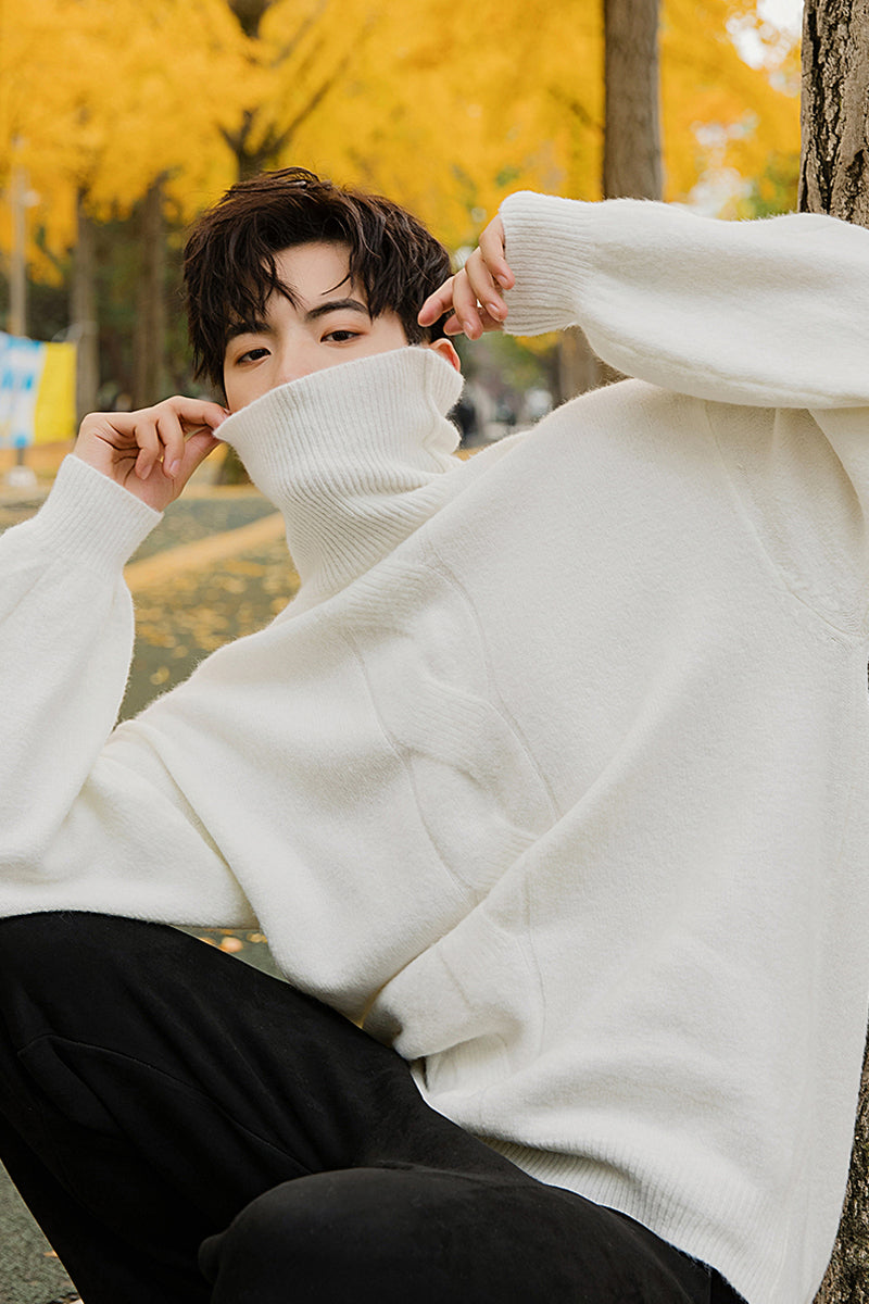 CHIC ERRO Chic Erro Korean version of the trend of young men's sweaters loose thick white turtleneck sweater men
