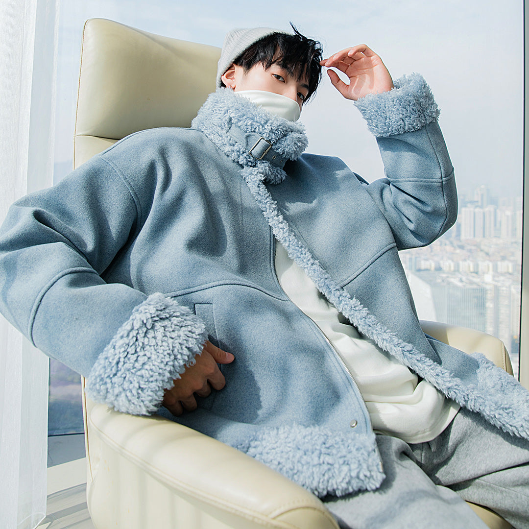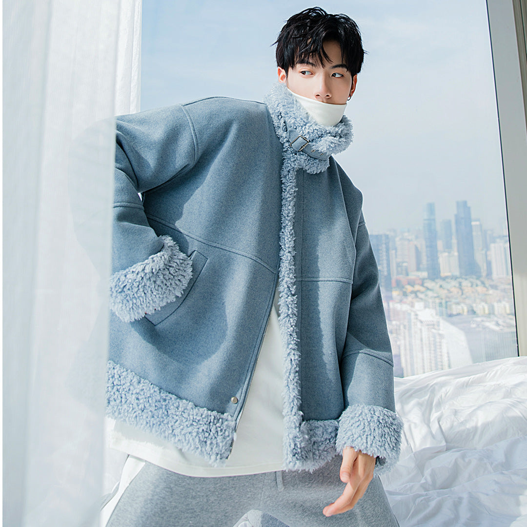 CHIC ERRO Chic Erro lamb velvet thick woolen coat Korean style trendy warm men's stand-up collar jacket