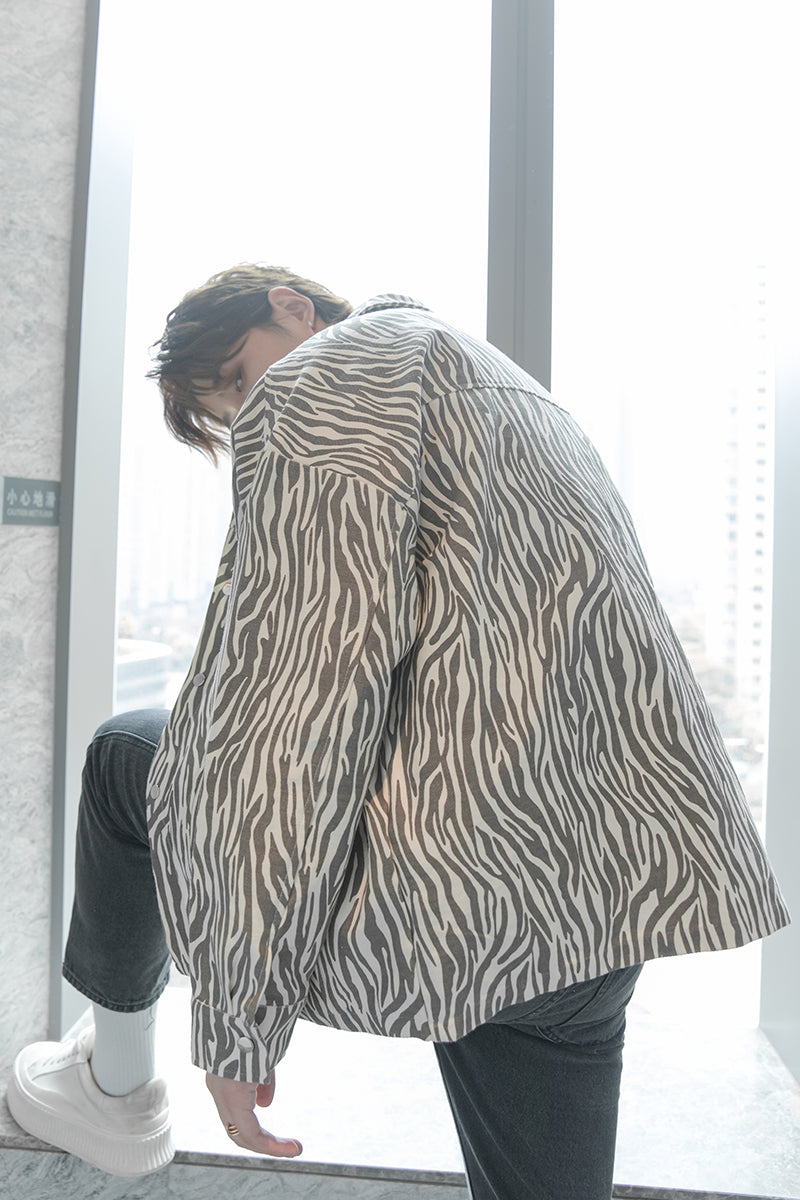 CHIC ERRO Chic Erro lapel jacket male autumn and winter handsome casual long-sleeved zebra pattern jacket male Korean trend top