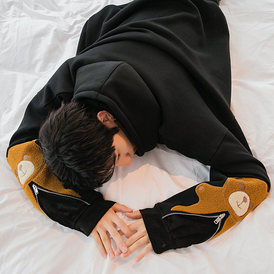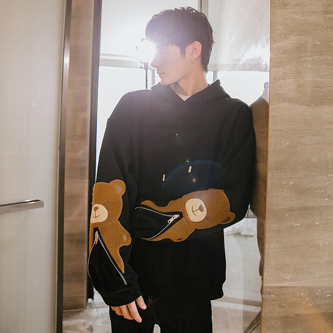 CHIC ERRO Chic Erro lazy style long-sleeved loose design flocking cute zipper bear student white hooded sweater