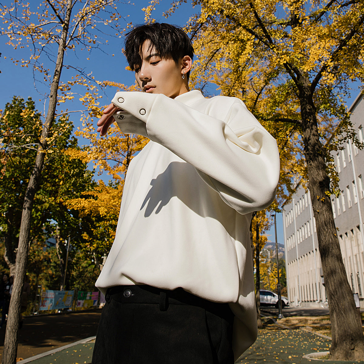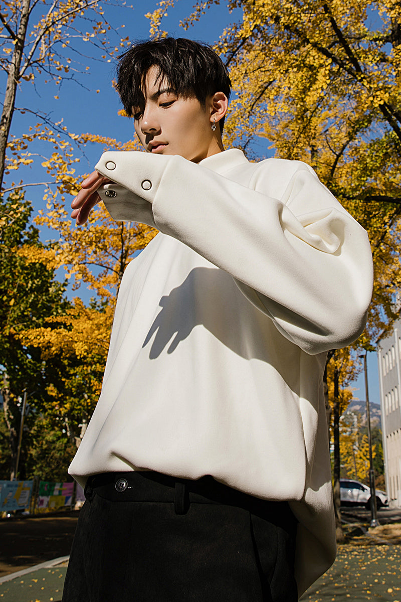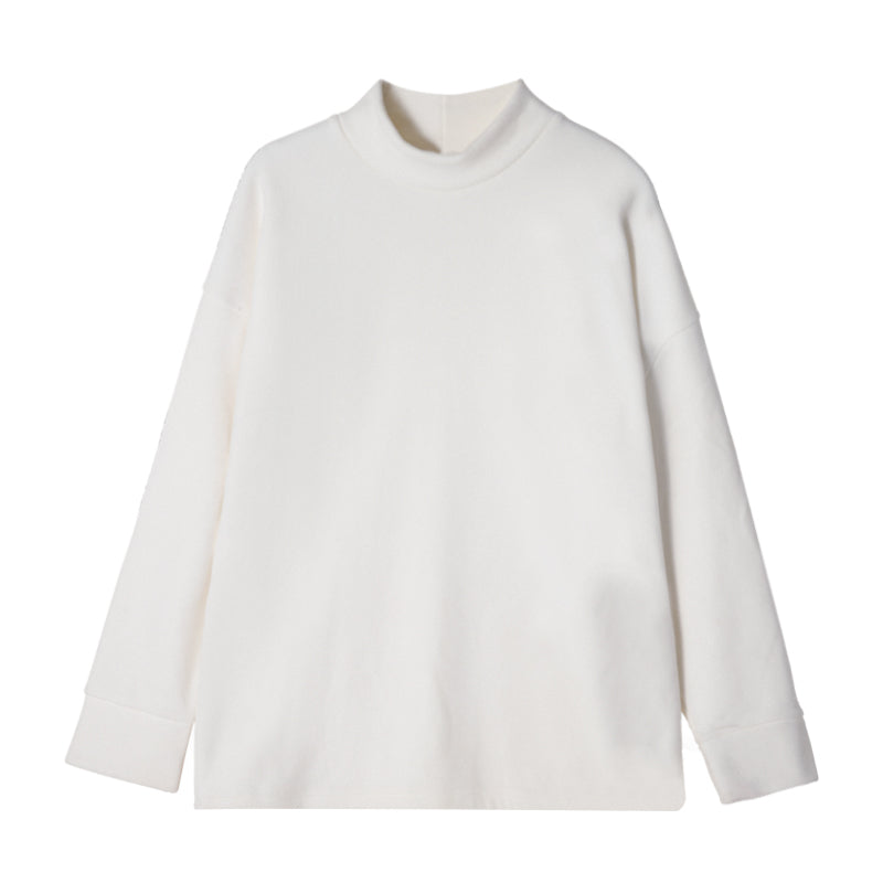 CHIC ERRO Chic Erro lazy style trendy tops loose bottom white plus velvet thick mid-collar half-high collar sweater men