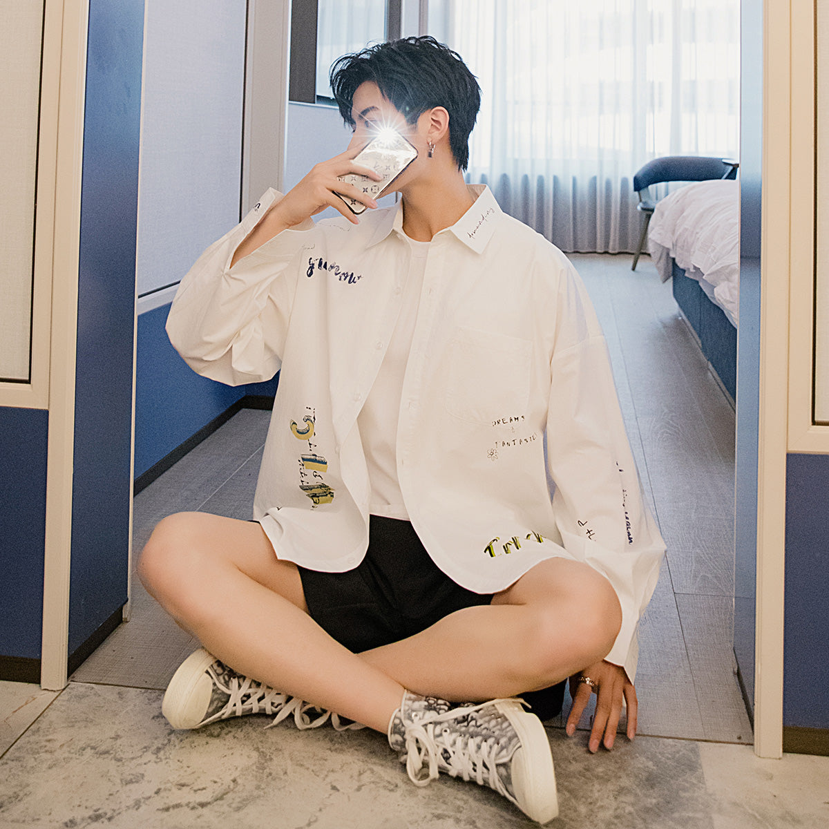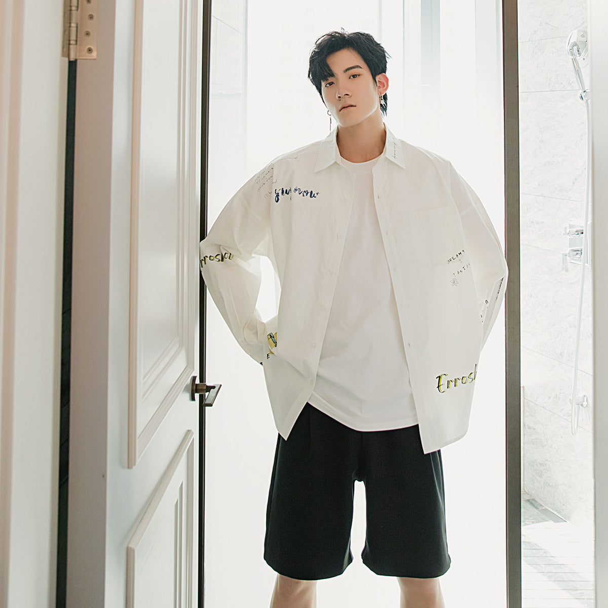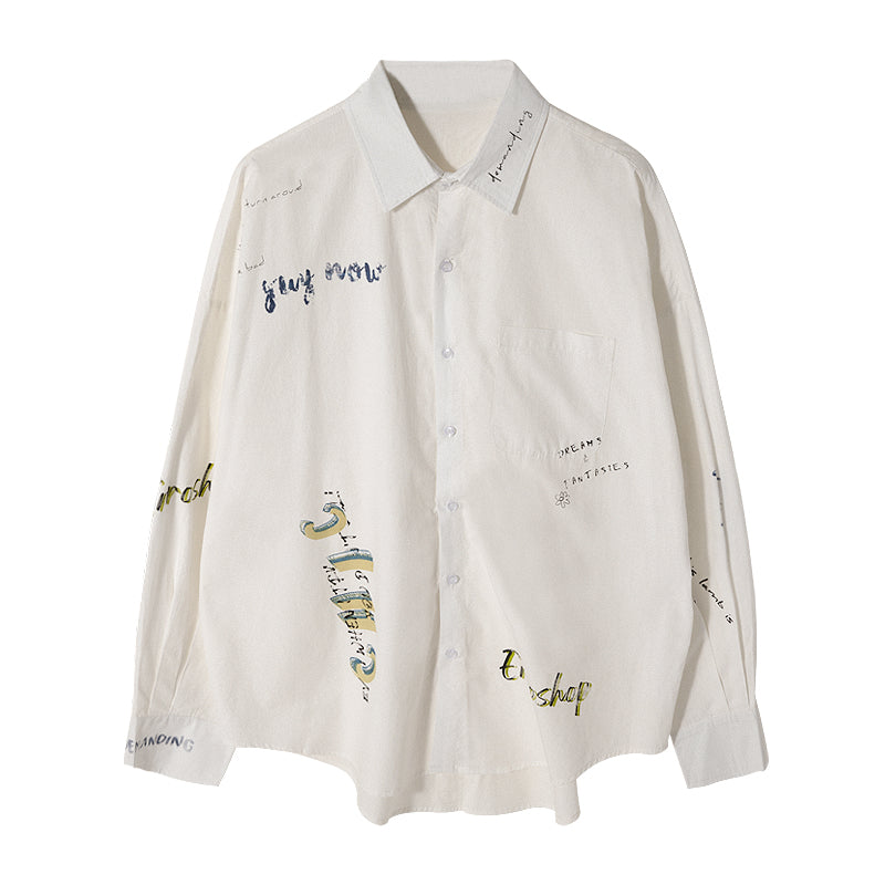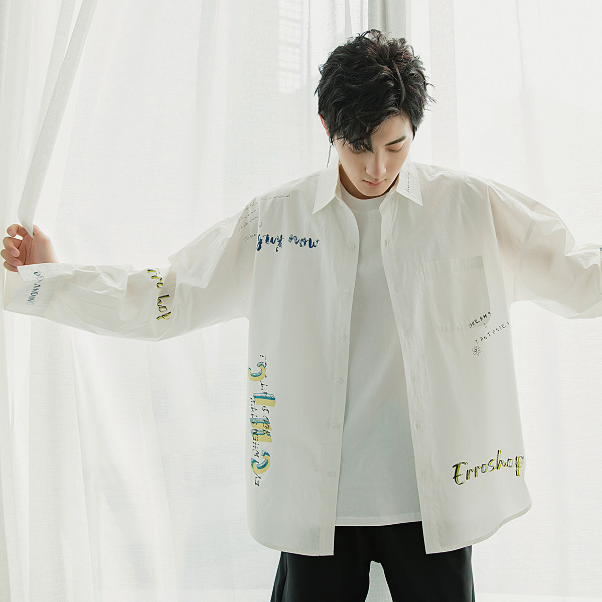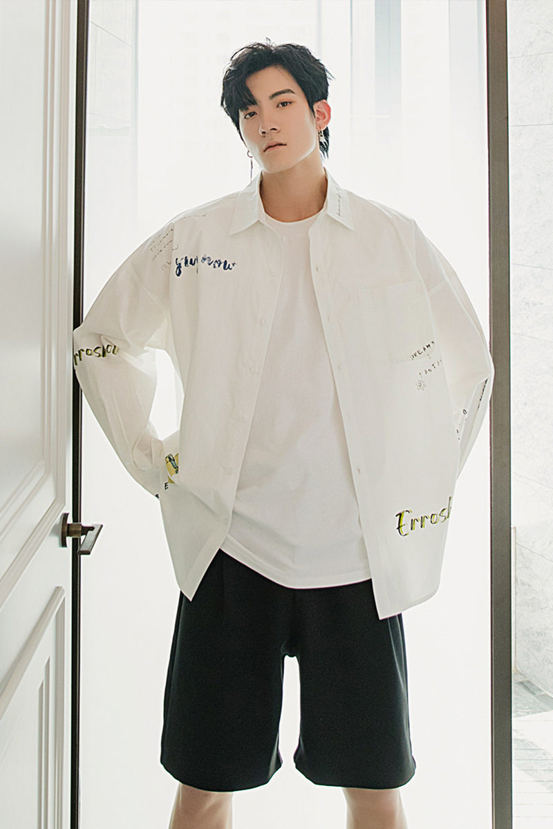 CHIC ERRO Chic Erro letter printed white shirt men's Korean style trendy handsome loose men's thin white shirt