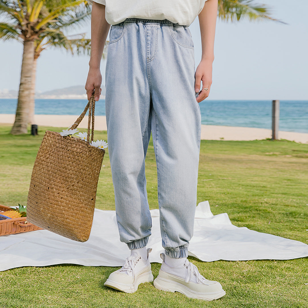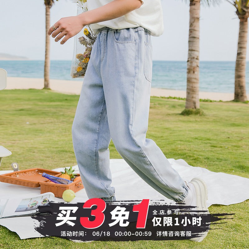 CHIC ERRO Chic Erro light-colored jeans men's 2021 new loose and versatile casual trendy brand nine-point beam pants