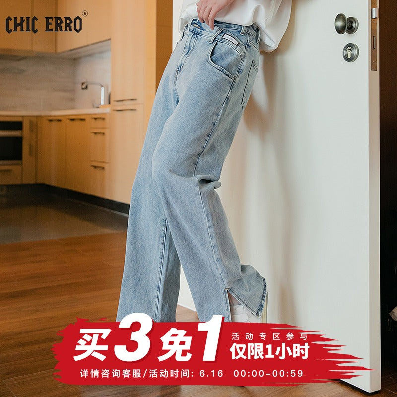 CHIC ERRO Chic Erro light-colored jeans men's summer thin loose loose youth handsome split pants casual mopping pants