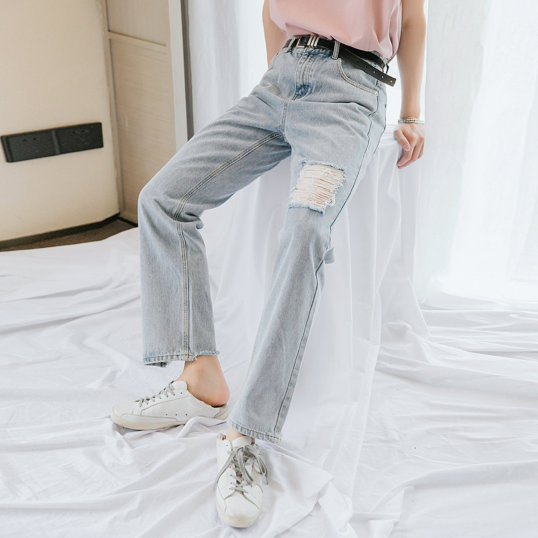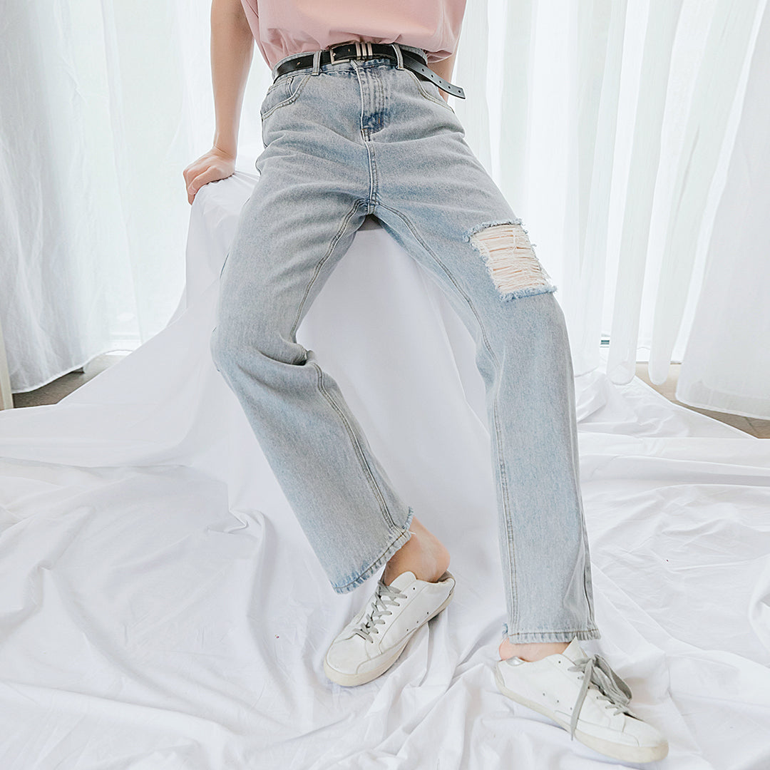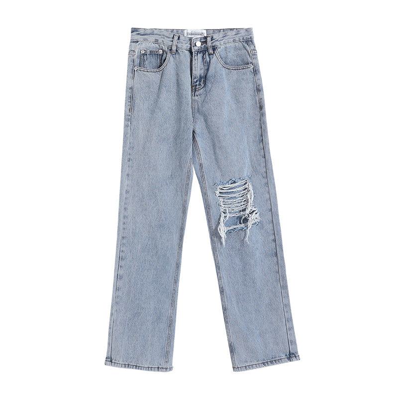 CHIC ERRO Chic Erro light-colored ripped jeans men's summer thin slim-fit men's loose straight casual long pants