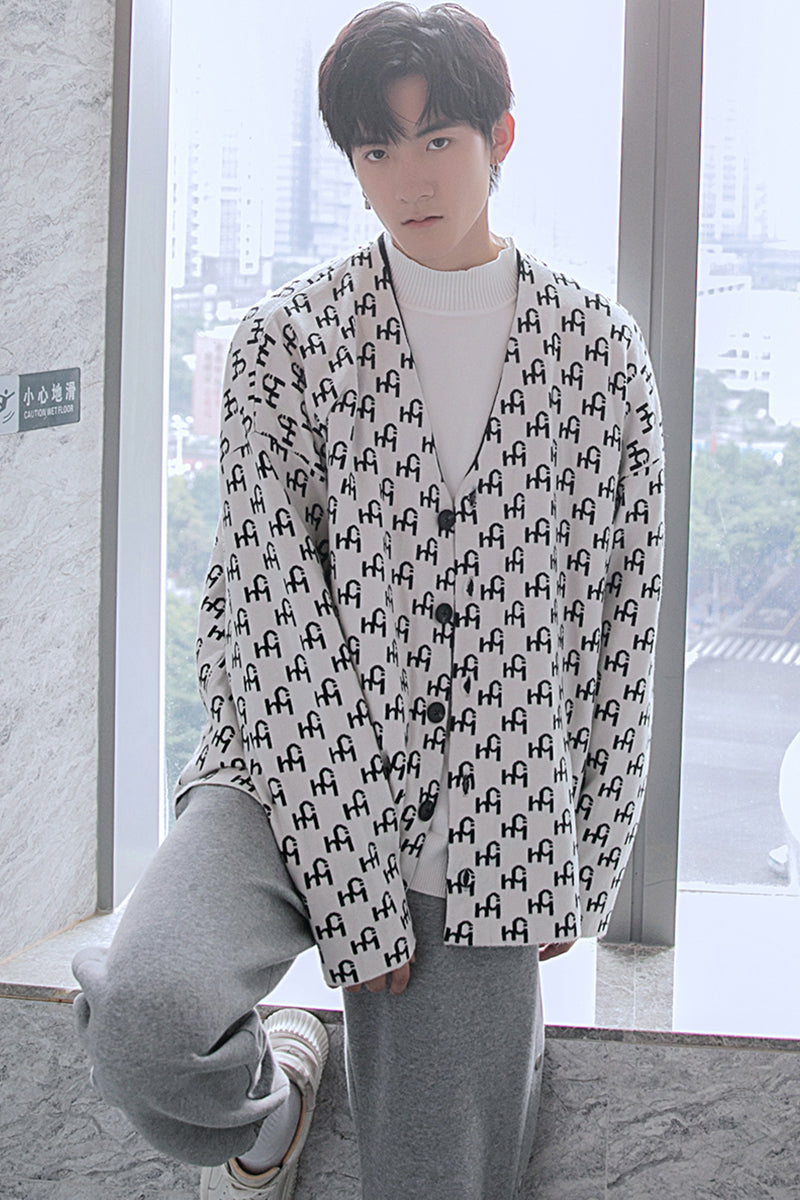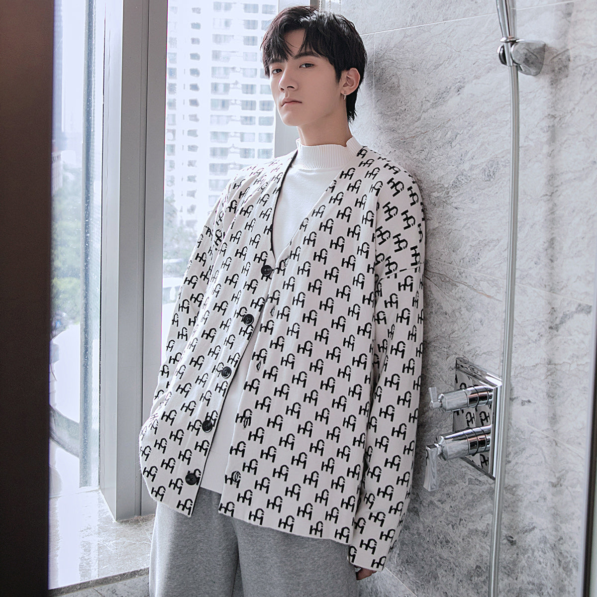 CHIC ERRO Chic Erro loose-fitting two-sided V-neck sweater outer wear autumn casual men's sweater cardigan jacket trend