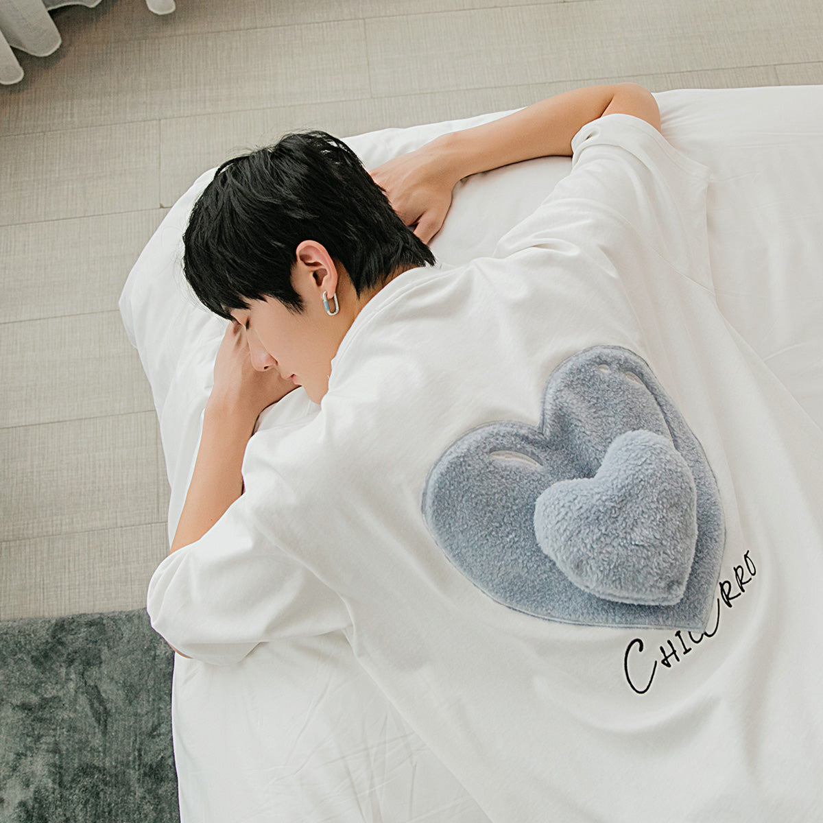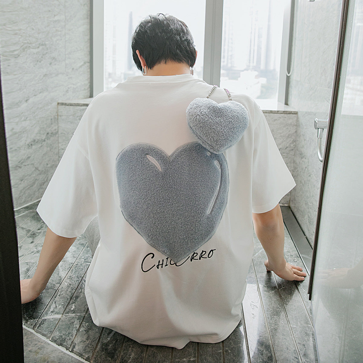 CHIC ERRO Chic Erro loose short-sleeved t-shirt men's 2021 new ins tide brand love flocking round neck t-shirt
