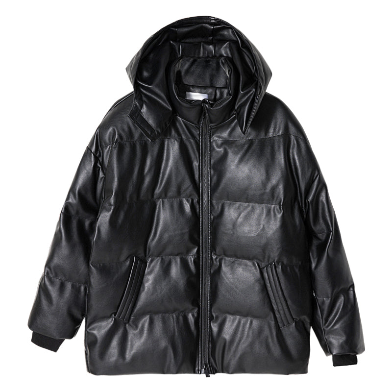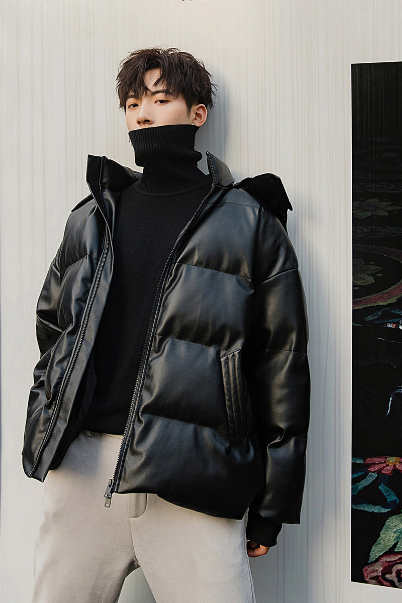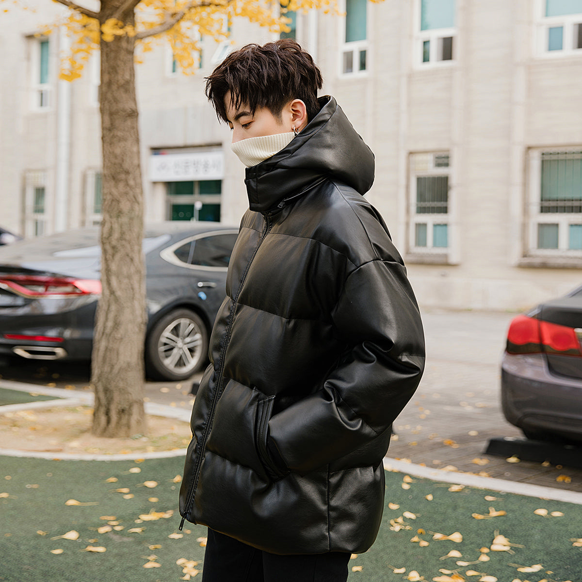 CHIC ERRO Chic Erro loose youth hooded leather jacket Korean version of the trend of men's pu leather jacket men's winter