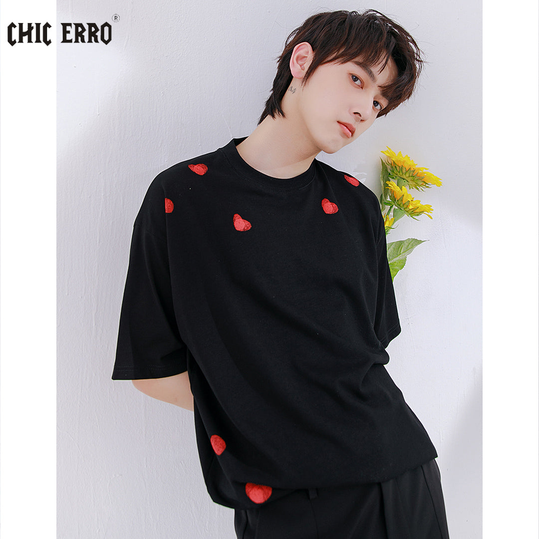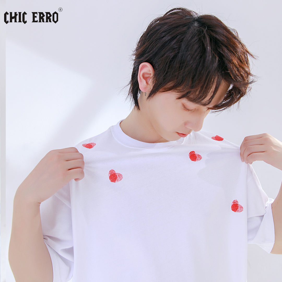 CHIC ERRO Chic Erro love printing short-sleeved T-shirt men's 2021 new trend ins youth t-shirt top