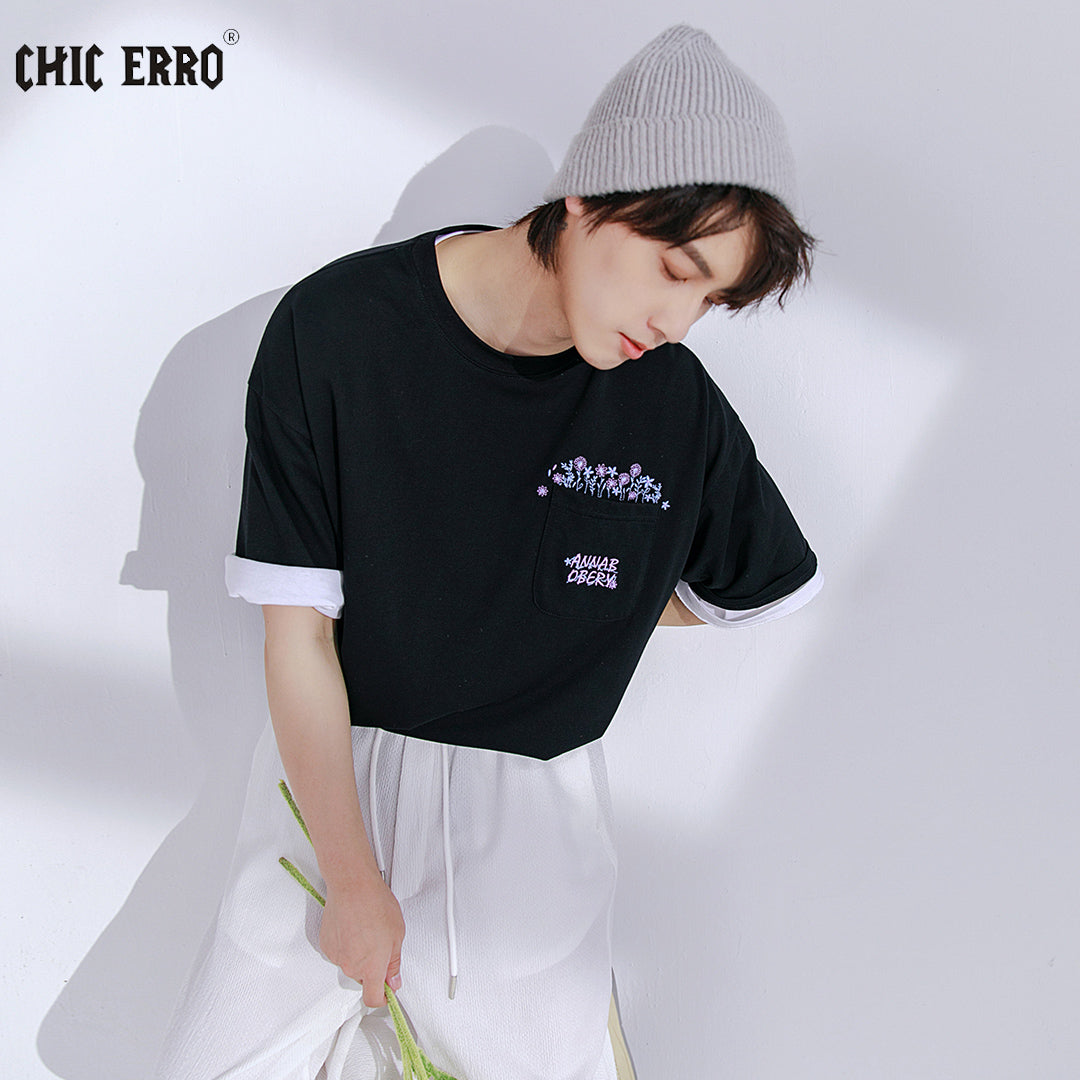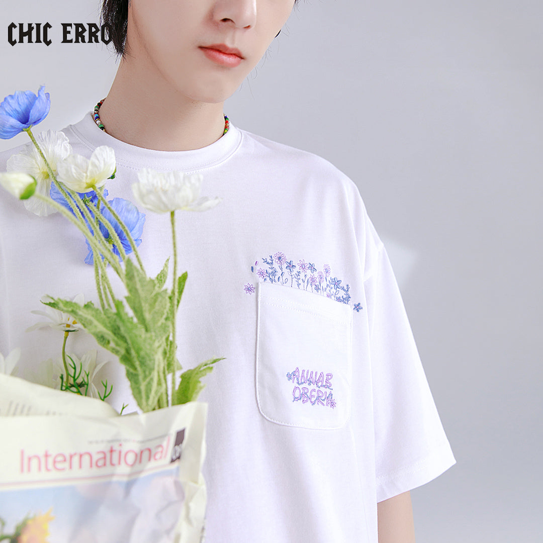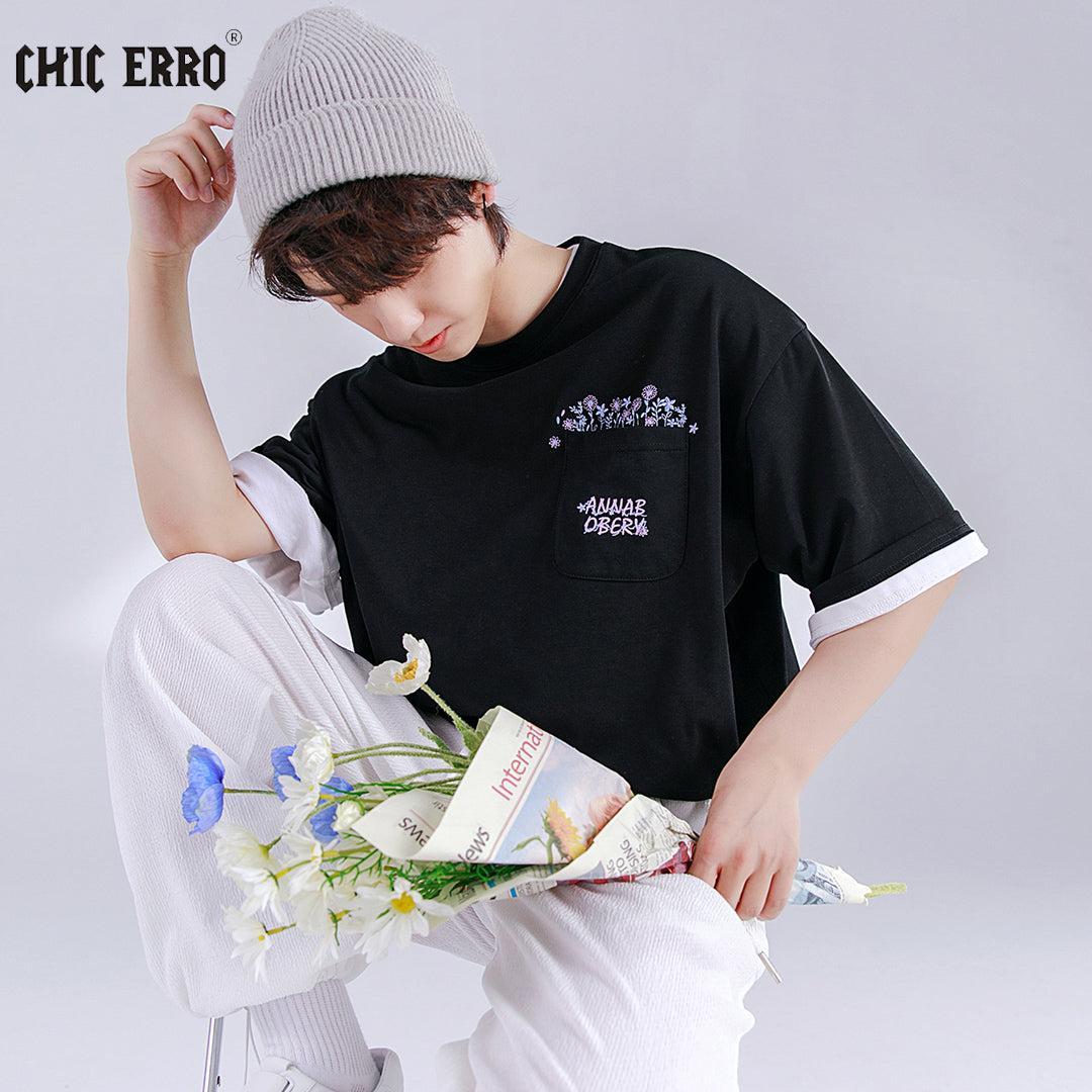 CHIC ERRO Chic Erro men's t-shirt short-sleeved 2021 new flower embroidery round neck loose ins tide brand T-shirt