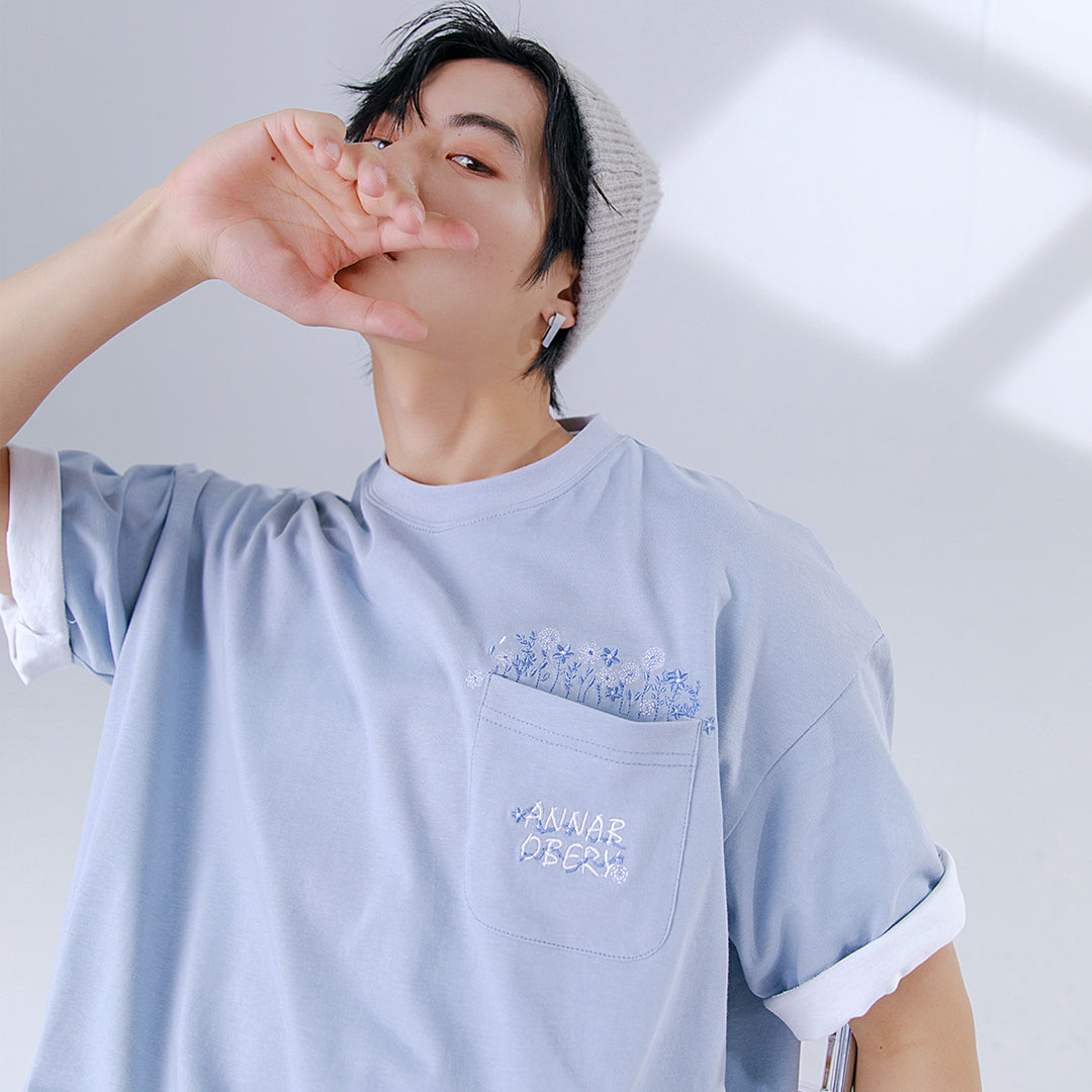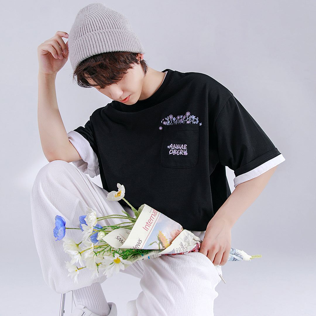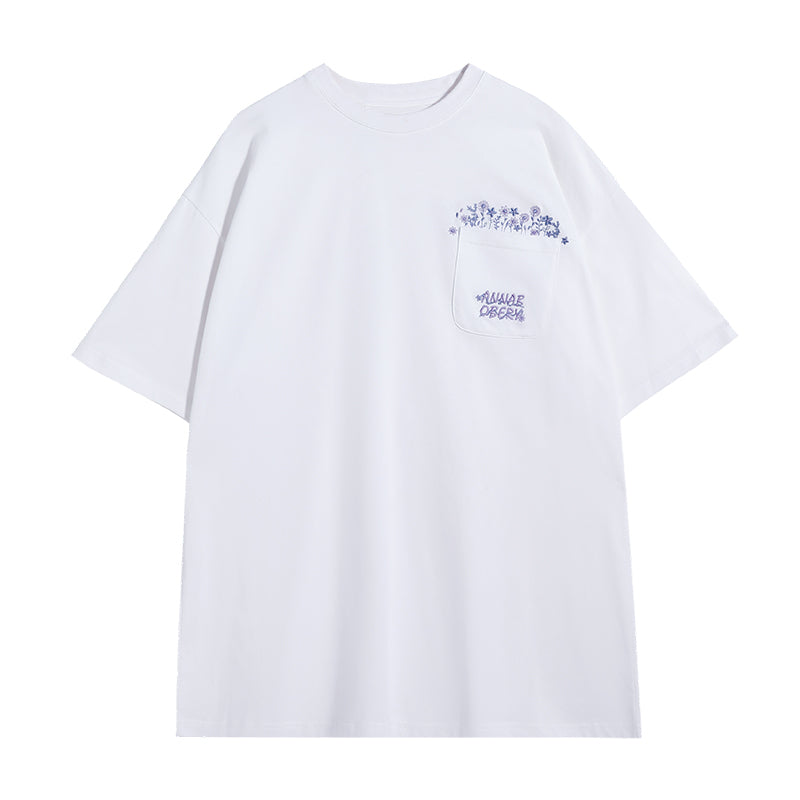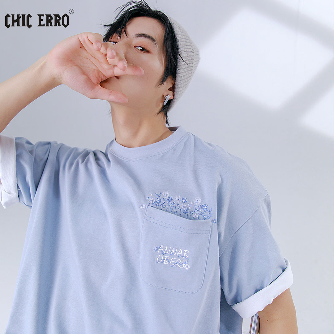 CHIC ERRO Chic Erro men's t-shirt short-sleeved 2021 new flower embroidery round neck loose ins tide brand T-shirt
