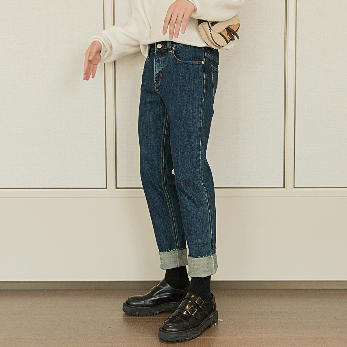 CHIC ERRO Chic Erro men's thick nine-point jeans Korean version of the trend loose straight pants men's autumn