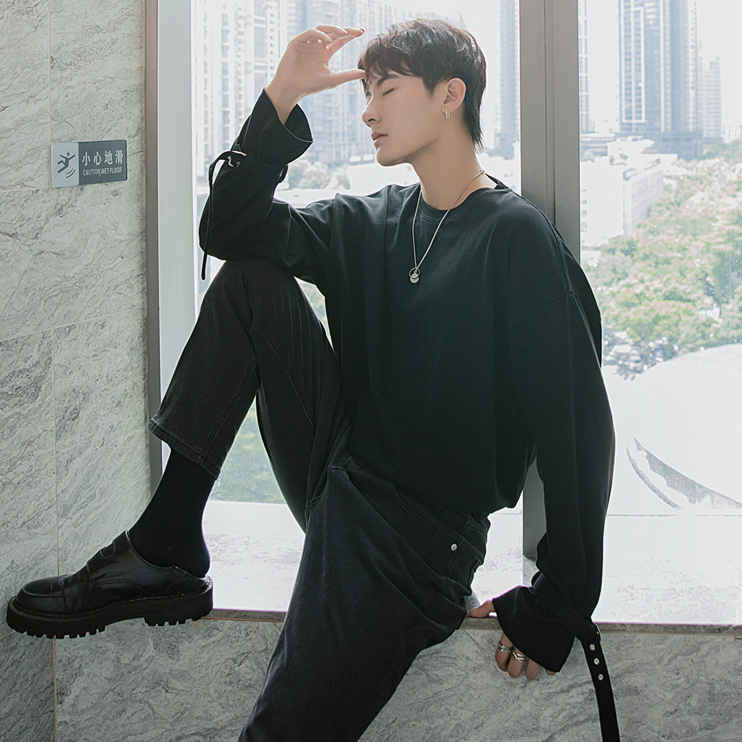 CHIC ERRO Chic Erro men's youth niche tops loose black bottoming shirt Korean long-sleeved t-shirt men