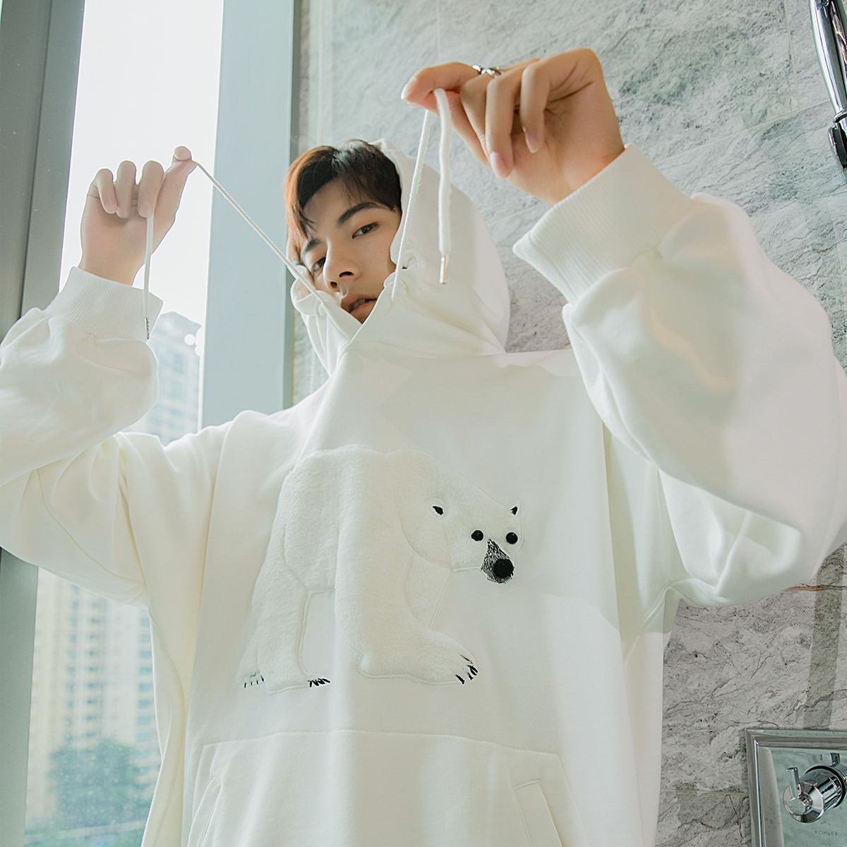 CHIC ERRO Chic Erro new autumn 2020 sweater men's hooded youth flocking animal print men's top