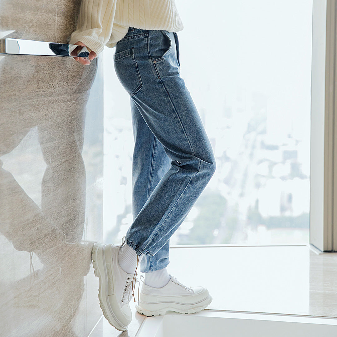 CHIC ERRO Chic Erro new blue tie-leg casual trousers loose trend men's jeans autumn and winter models