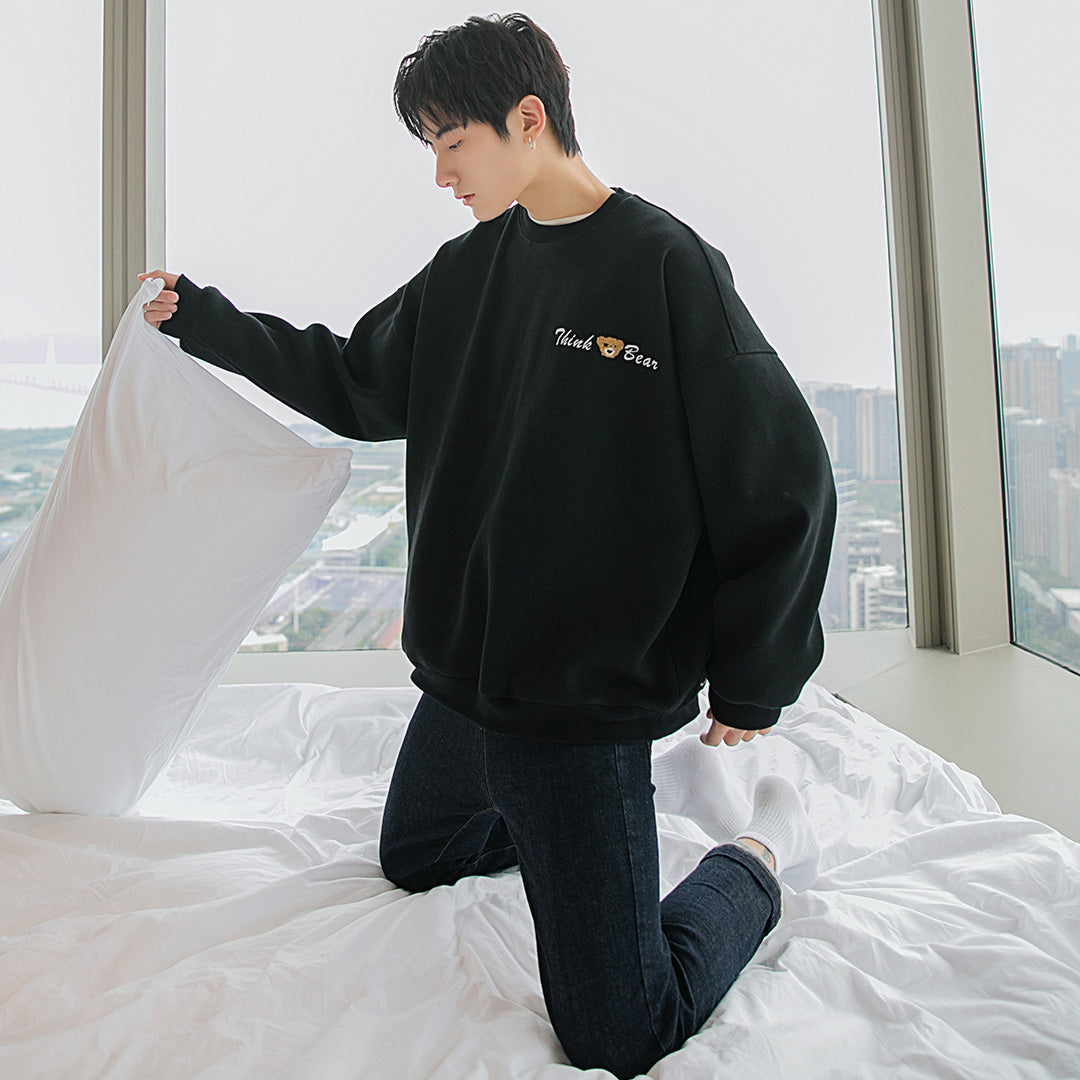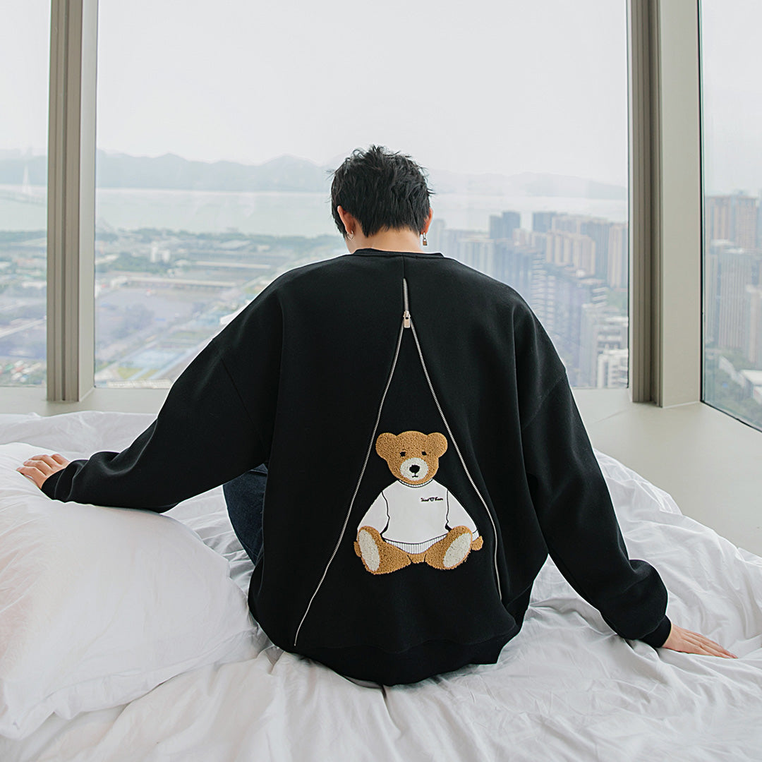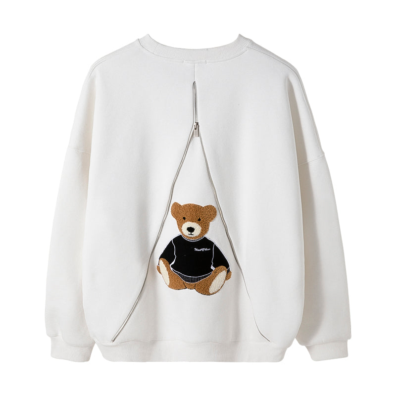 CHIC ERRO Chic Erro new hedging long-sleeved design sense back zipper cute bear loose round neck white sweater