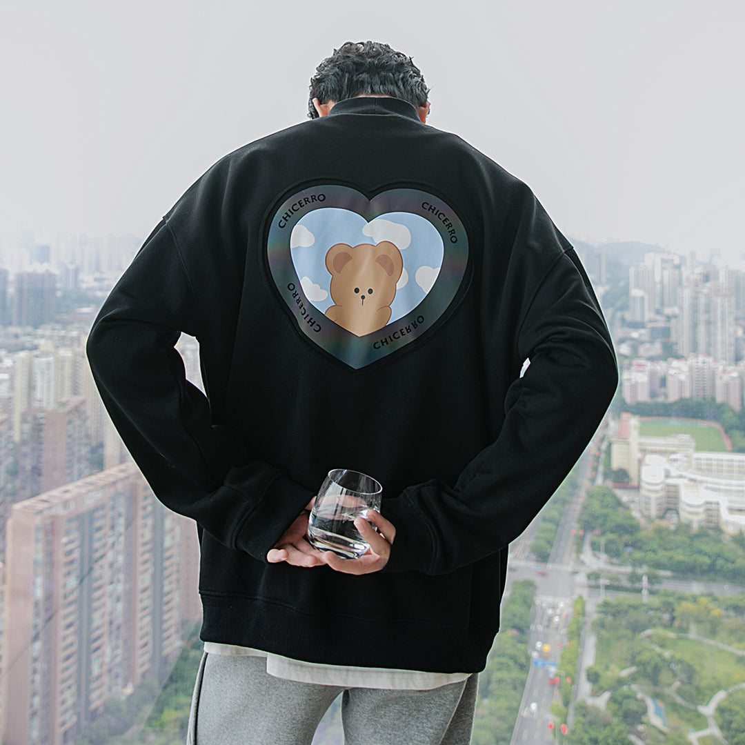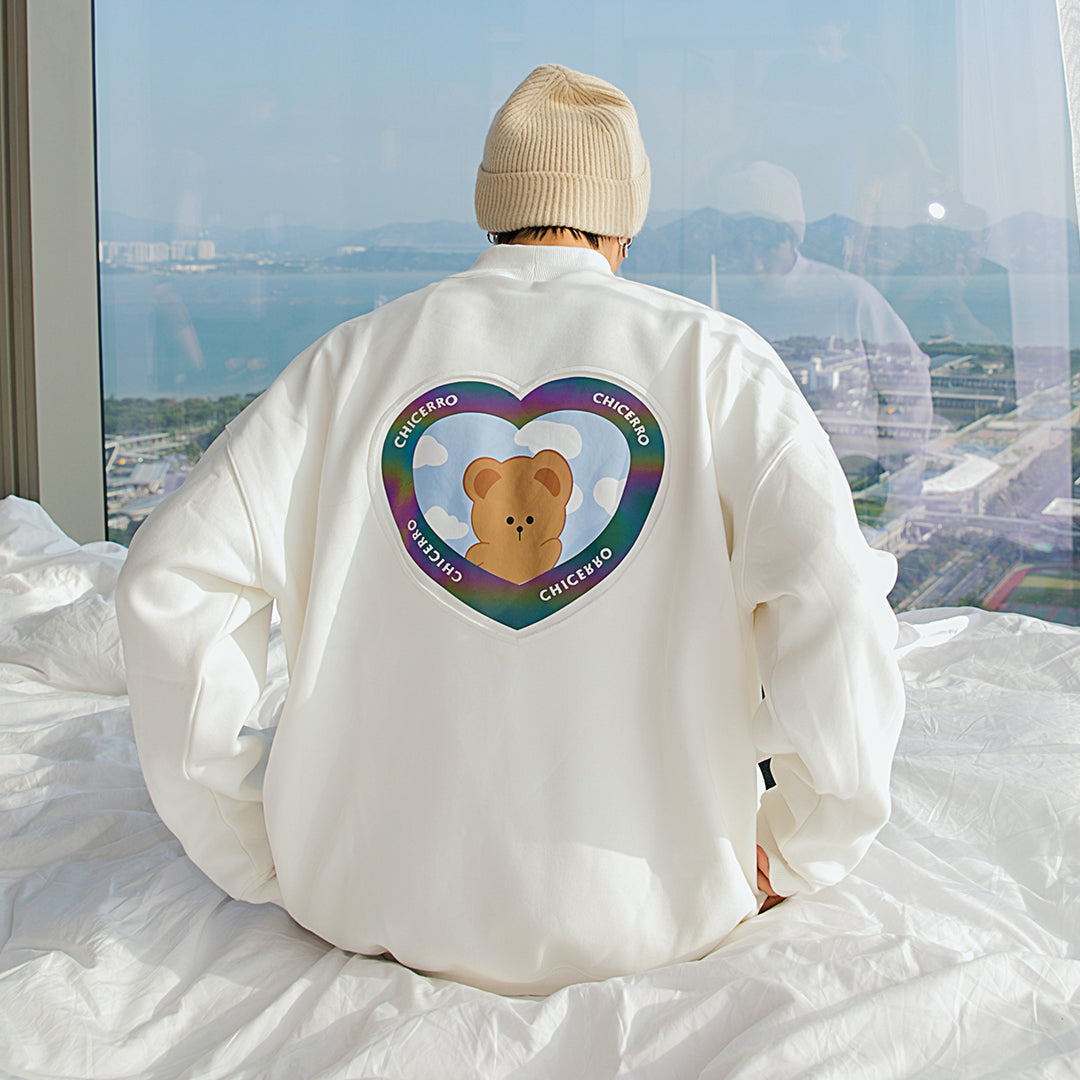 CHIC ERRO Chic Erro new style loose long-sleeved back cute reflective bear trend all-match white high-neck sweater