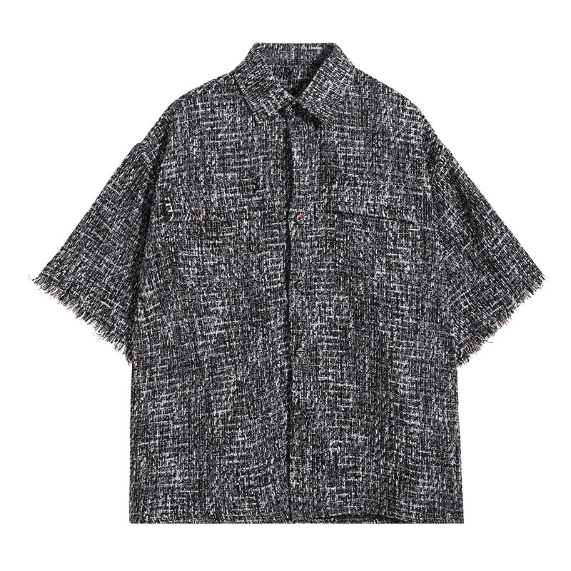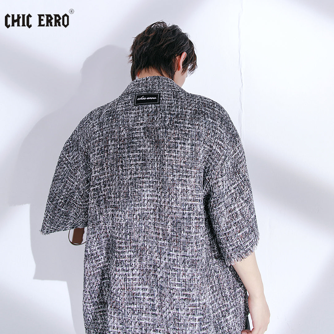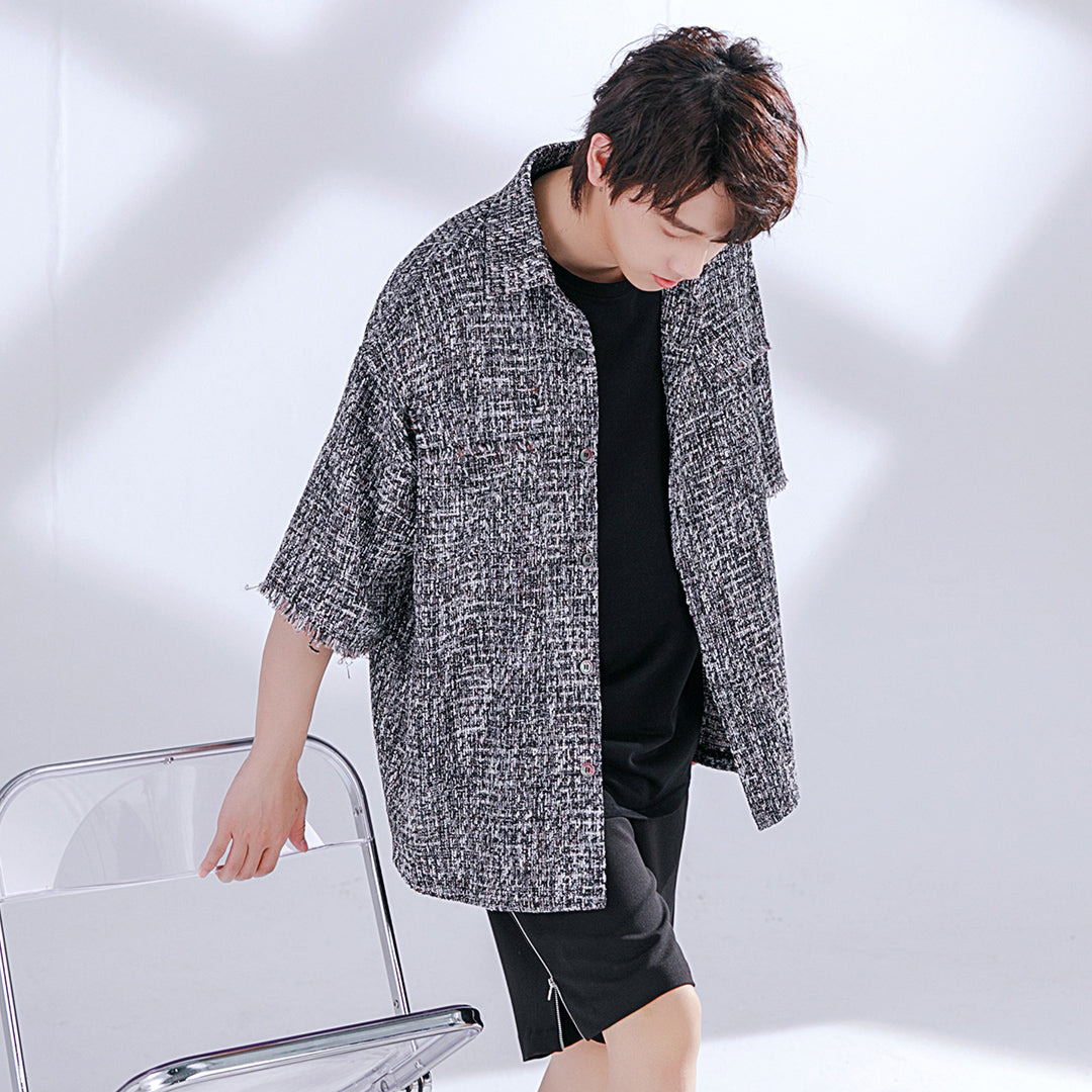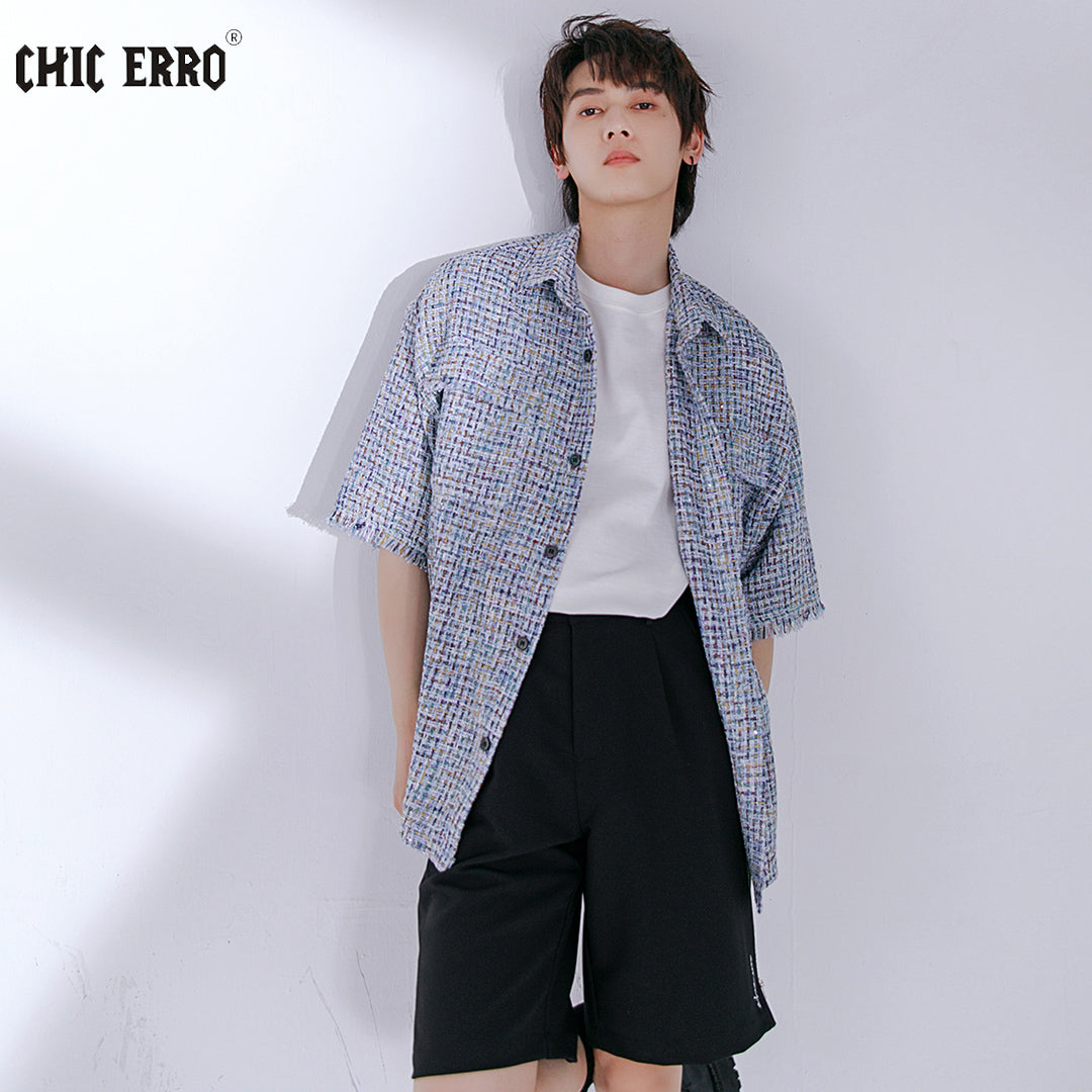 CHIC ERRO Chic Erro niche design sense short-sleeved fringe handsome shirt men's short-sleeved loose plaid shirt jacket