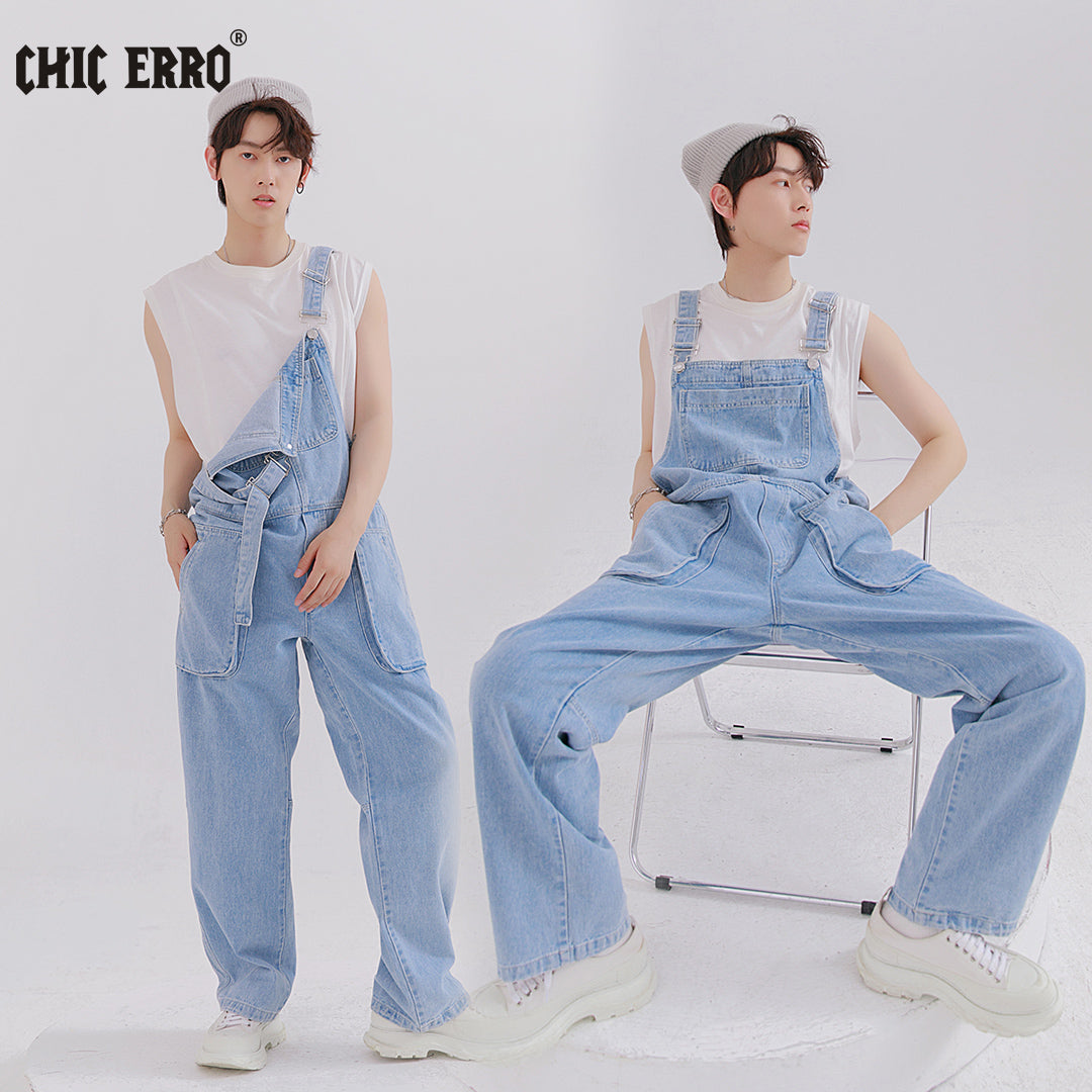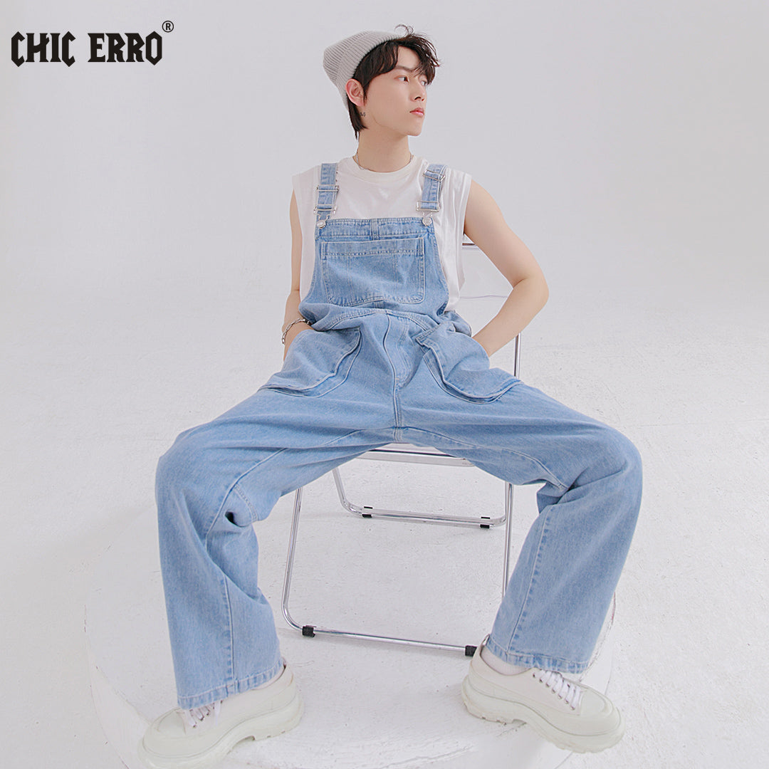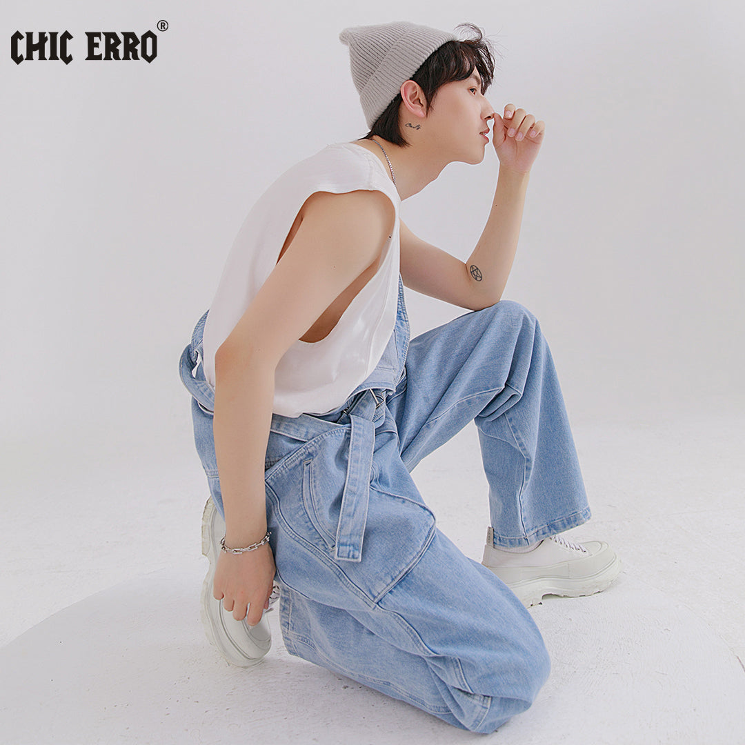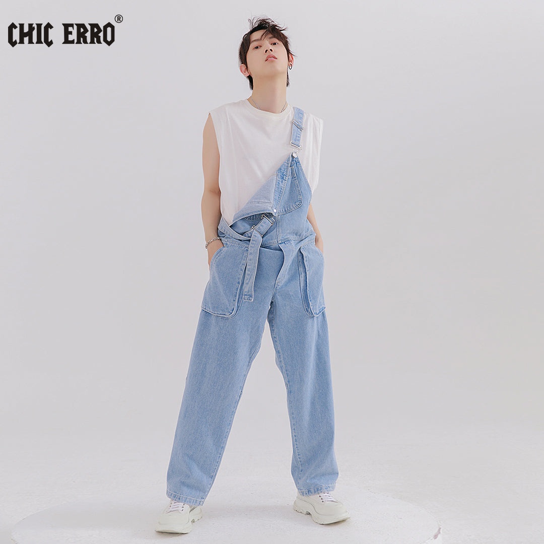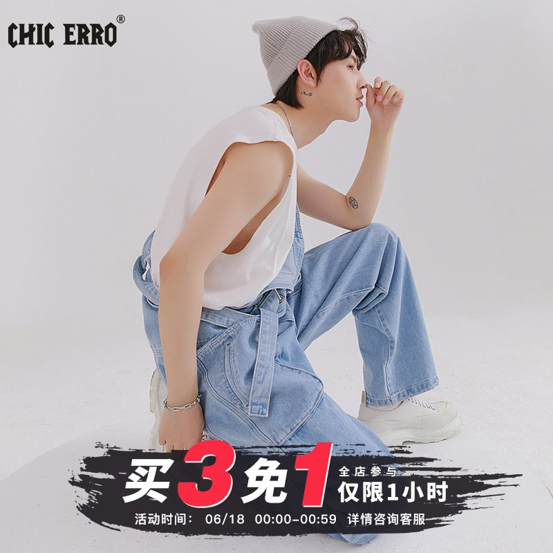 CHIC ERRO Chic Erro niche men's jeans summer thin loose straight design trend suspenders casual pants