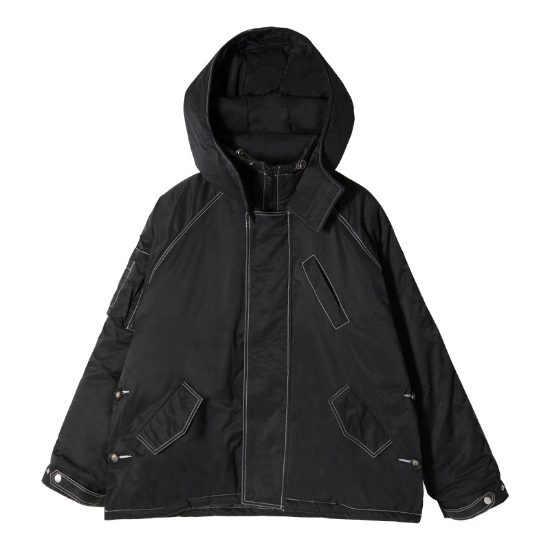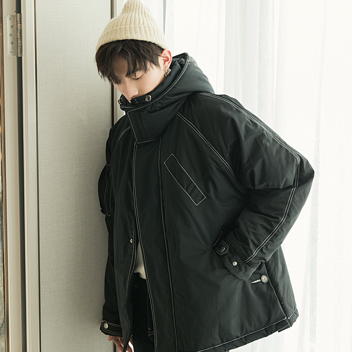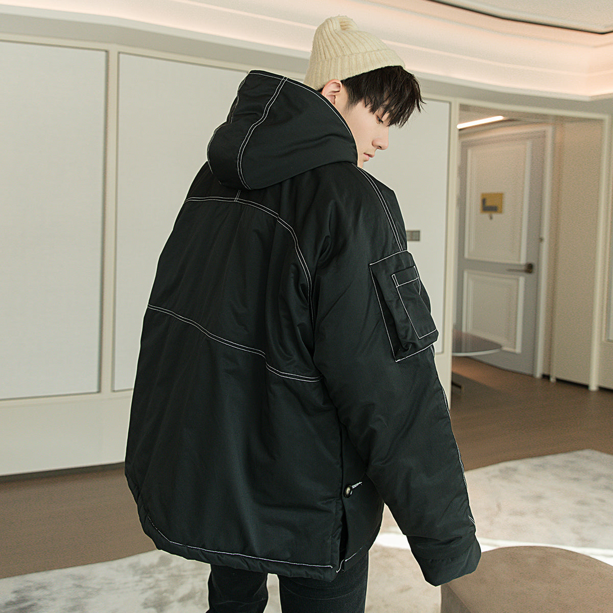 CHIC ERRO Chic Erro open-line loose thick cotton-padded jacket Korean version of the trend of black hooded jacket men's autumn and winter
